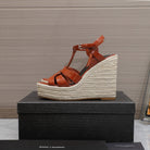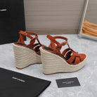 SL TRIBUTE WEDGE SANDALS BRICK POLISHED CALFSKIN