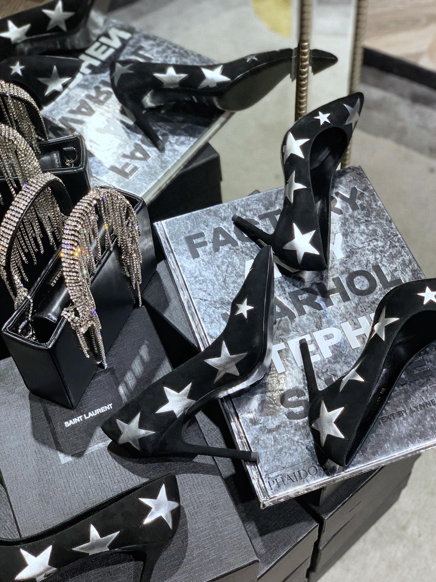 SL CHARLOTTE SILVER STAR PUMPS BLACK SUEDE