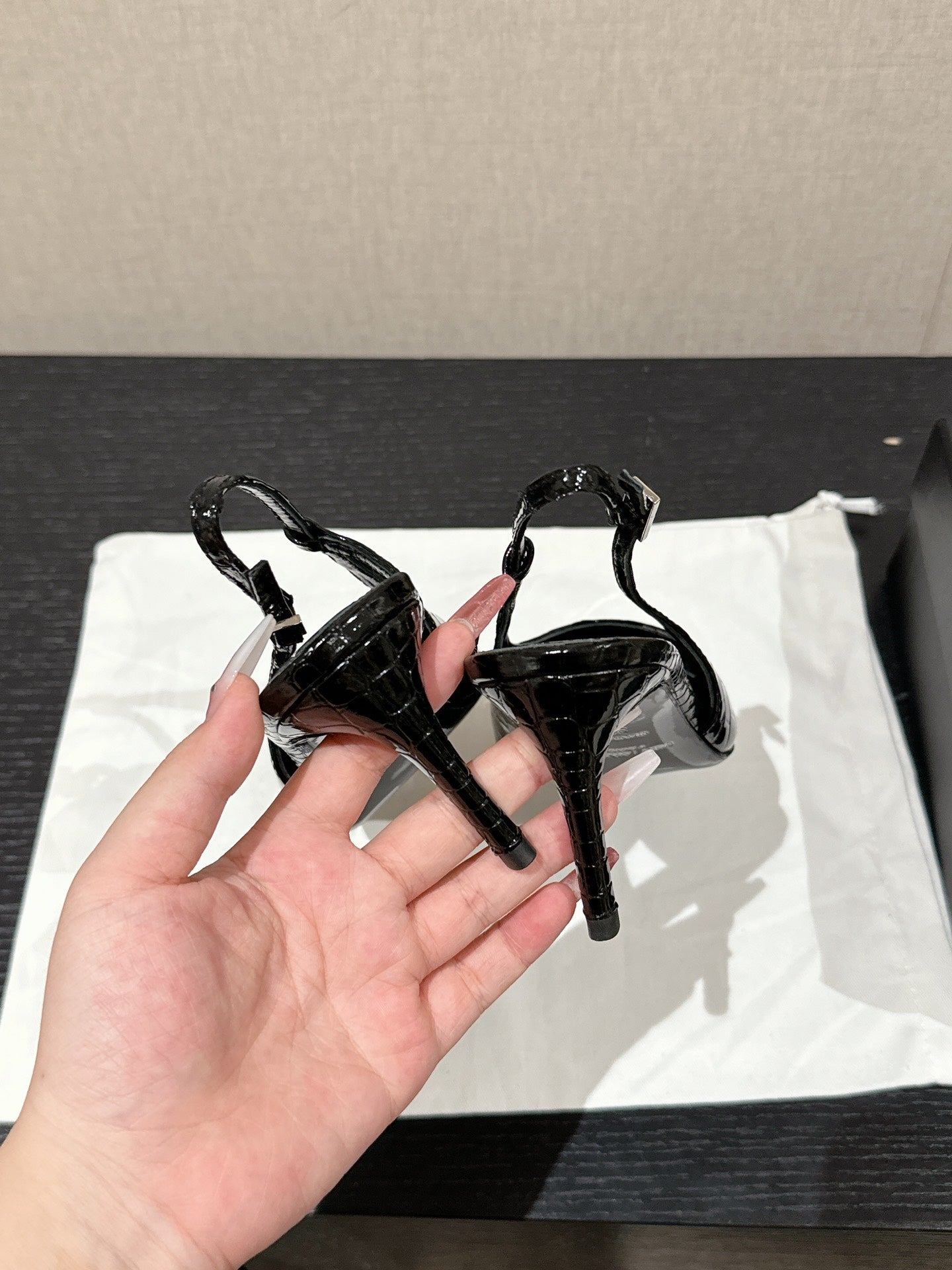 SL CHERISH CROCODILE SLINGBACK PUMP 75 BLACK CALFSKIN