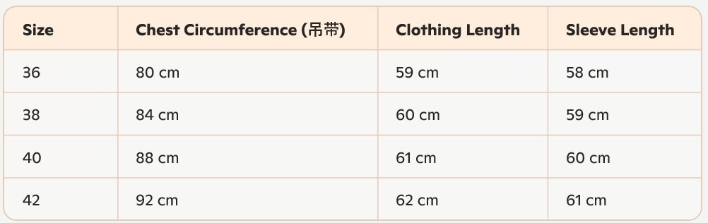- Size : 36, 38, 40, 42
