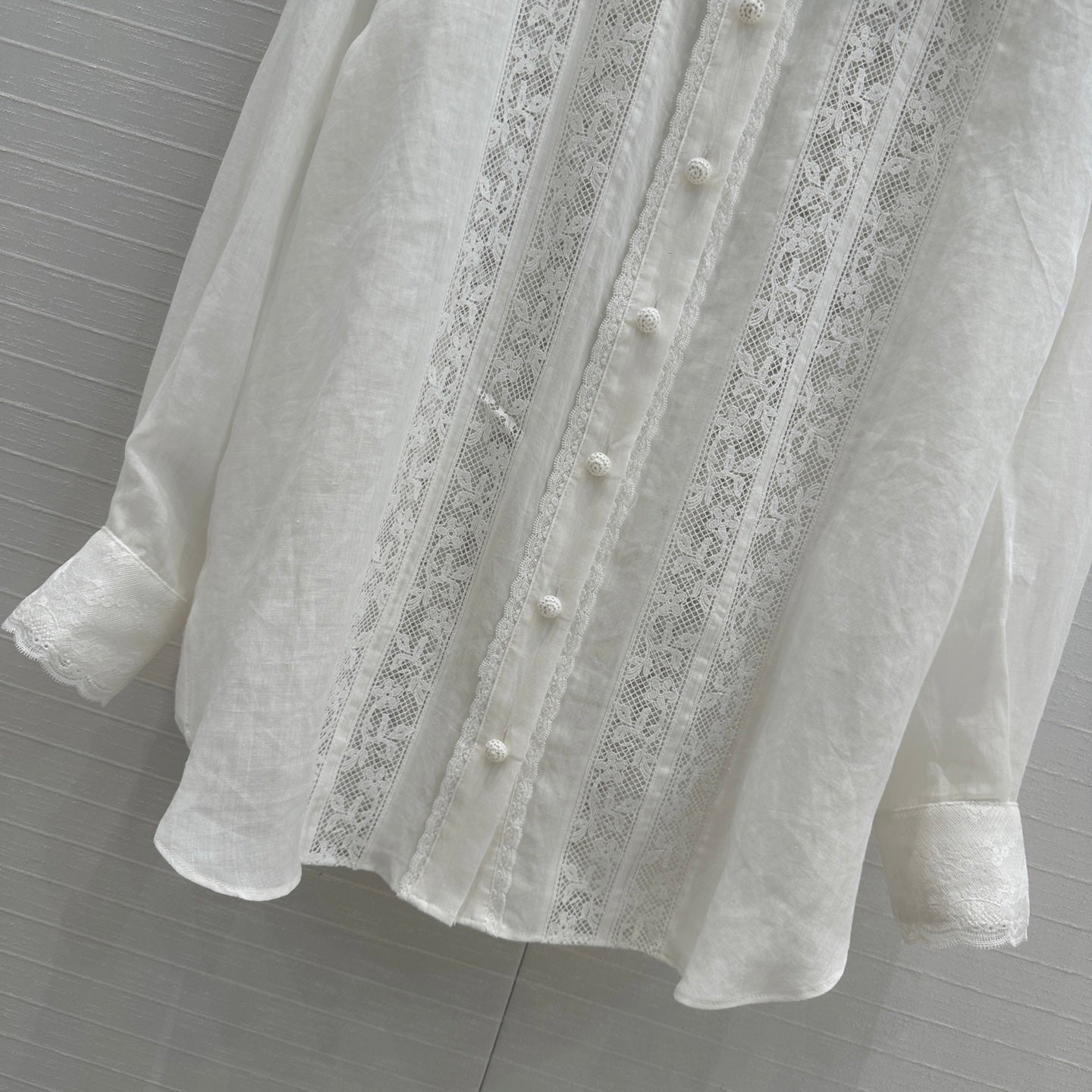 ZIMMERMANN Lucky Plunge Midi Dress Cream/Blue Floral Linen Fabric