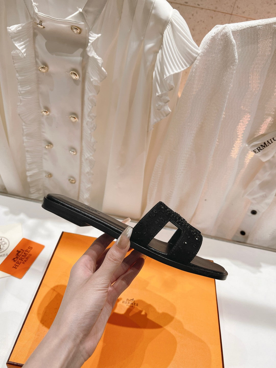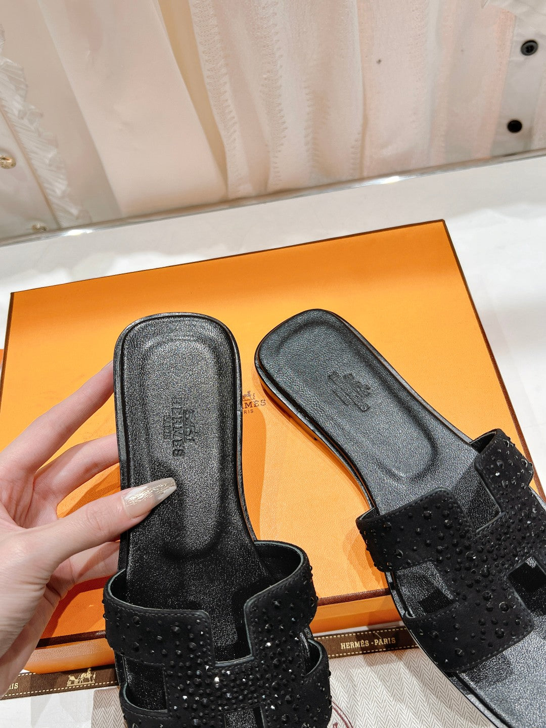 0RAN SANDAL BLACK LAMBSKIN ATTACH CRYSTALS-BLACK