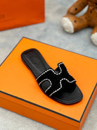 - Material: Sandal in calfskin with iconic "H" cut-out.