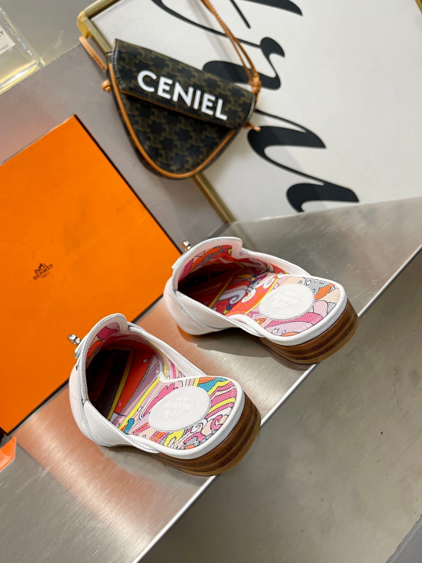 0Z MULE WHITE CALFSKIN WITH PATTERN