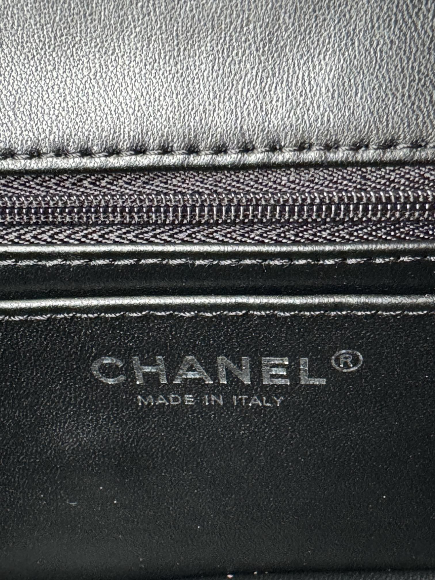 24c mini flap bag 20cm with top handle black calfskin silver hardware