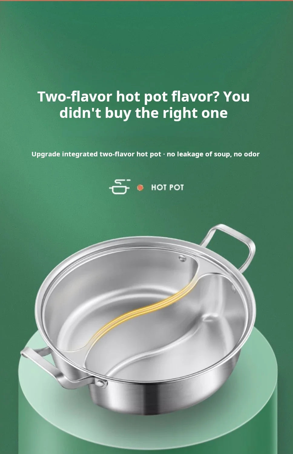 Enjoy authentic hot pot dining with this premium 316 stainless steel twin-section pot. Perfect for cooking two flavors at once, it's compatible with induction cookers and designed for durability.