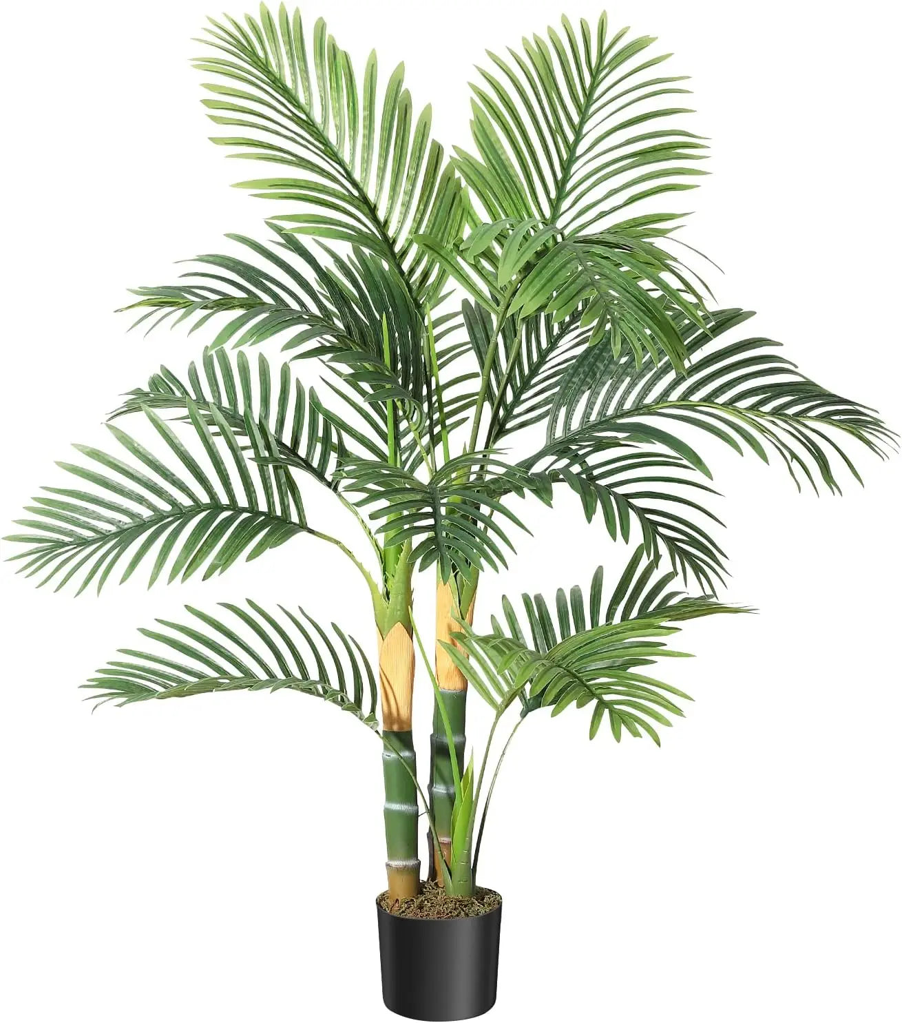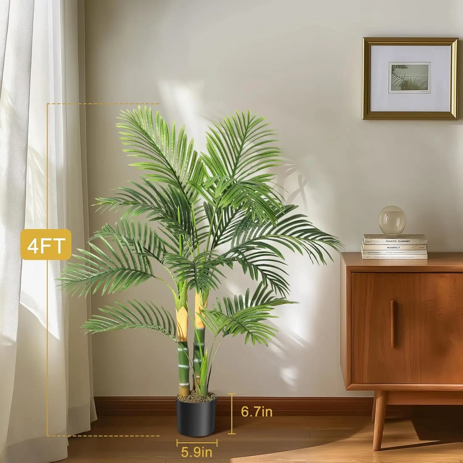 4FT Artificial Golden Cane Palm Tree | UV-Resistant Faux Tropical Plant for Indoor & Outdoor Decor