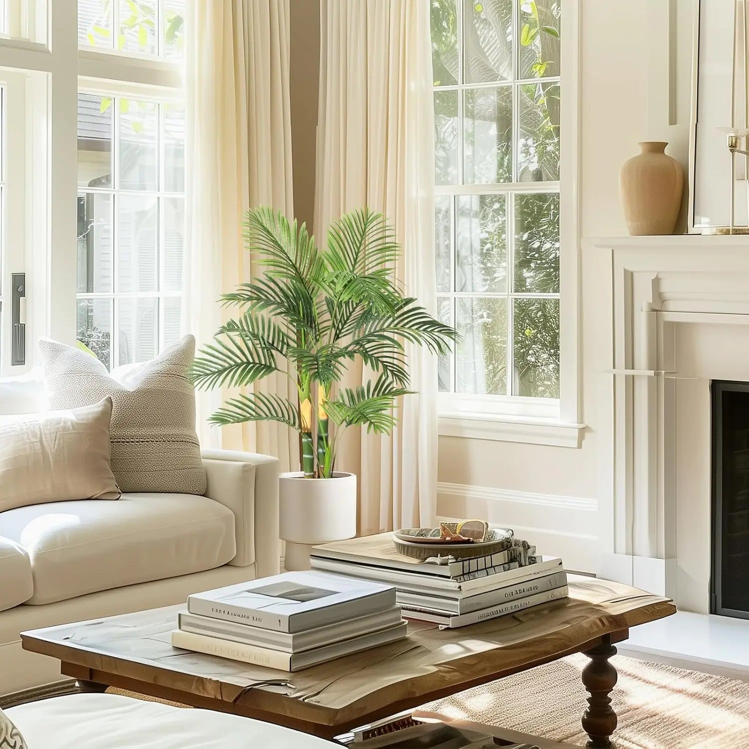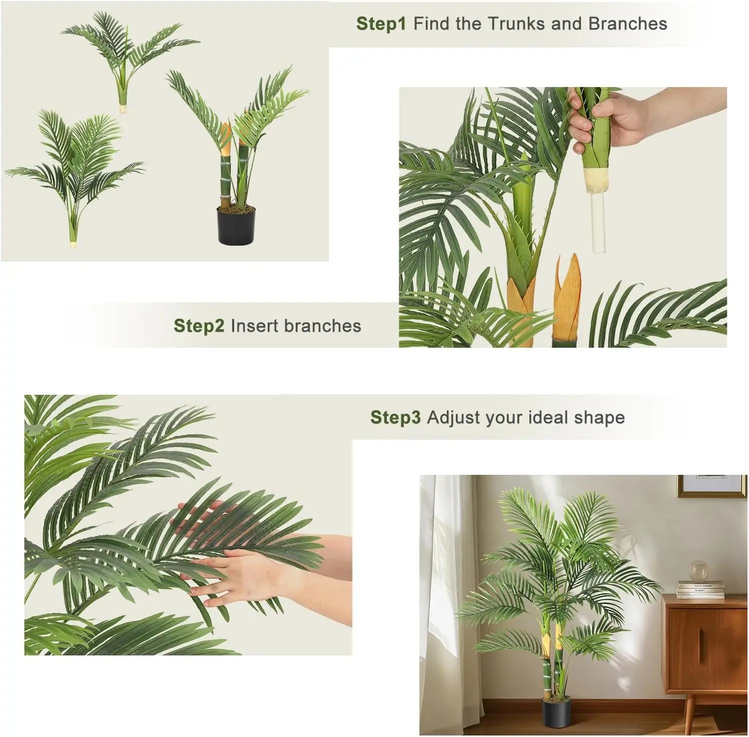 Enhance your living space with our stunning 4-foot Artificial Golden Cane Palm Tree. This lifelike palm tree features 14 detailed fronds, each carefully crafted with feather-like leaves and realistic textures. Designed from high-quality PVC and PE materials, it promises durability, UV resistance, and lasting freshness without fading or aging.