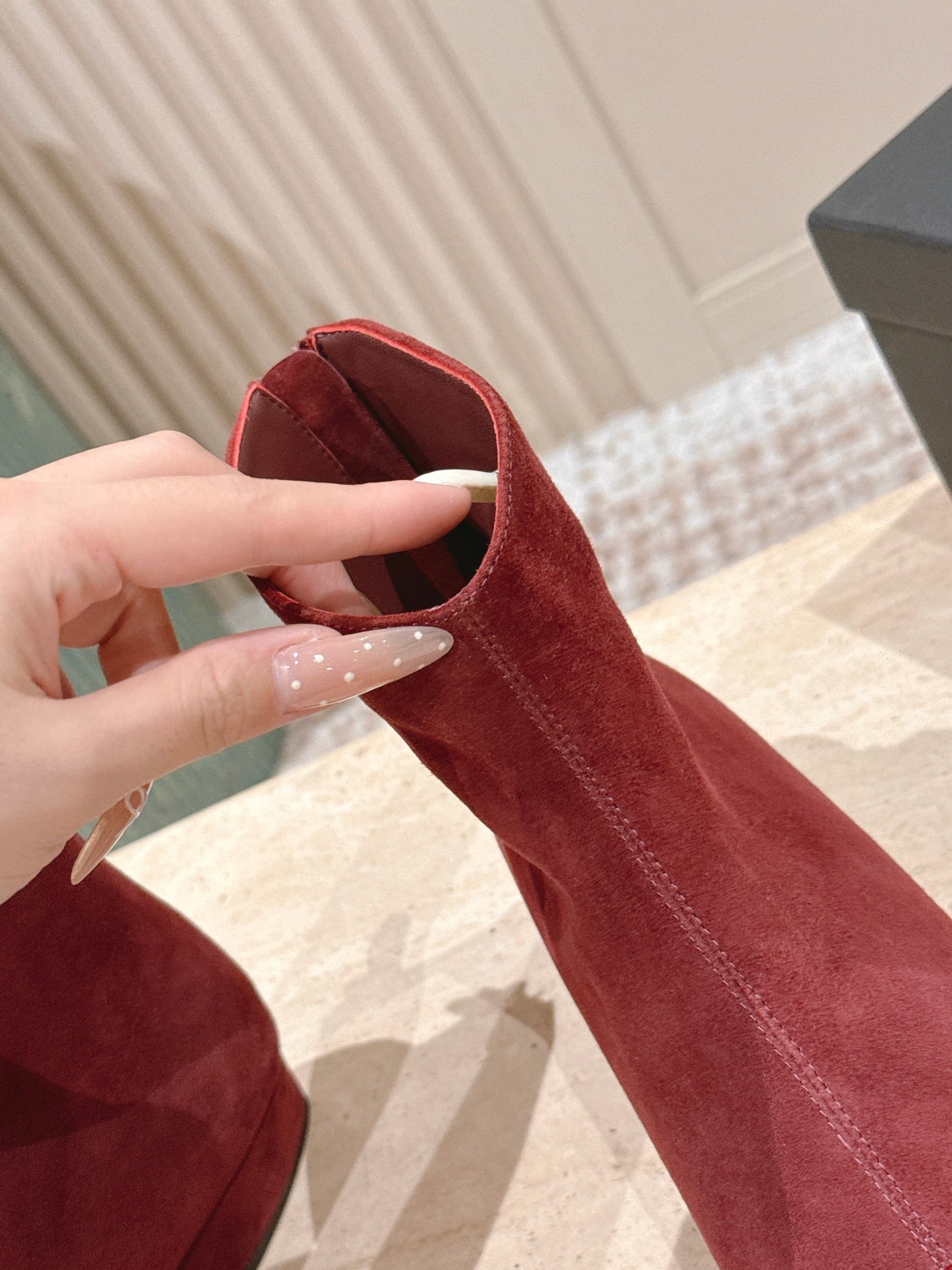 Alaia 2025 Ankle Boot With Patent Leather Cap Toe Red Suede 556088