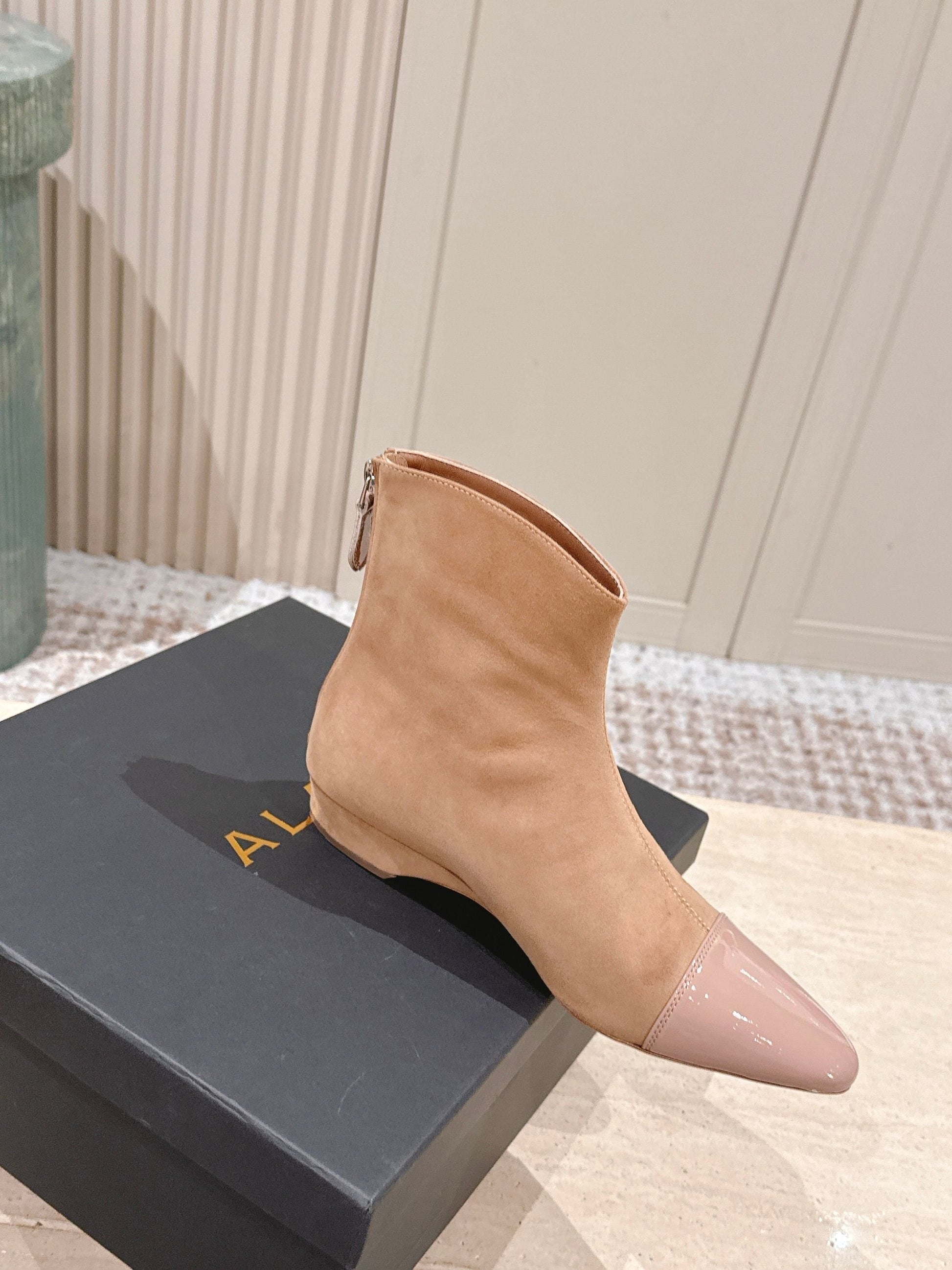 Alaia 2025 Ankle Boot With Patent Leather Cap Toe Tan Nude Suede 556087