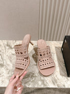 Alaia 2025 Vienne Cutout Kitten-Heel Slide Sandals Pink Leather 293651