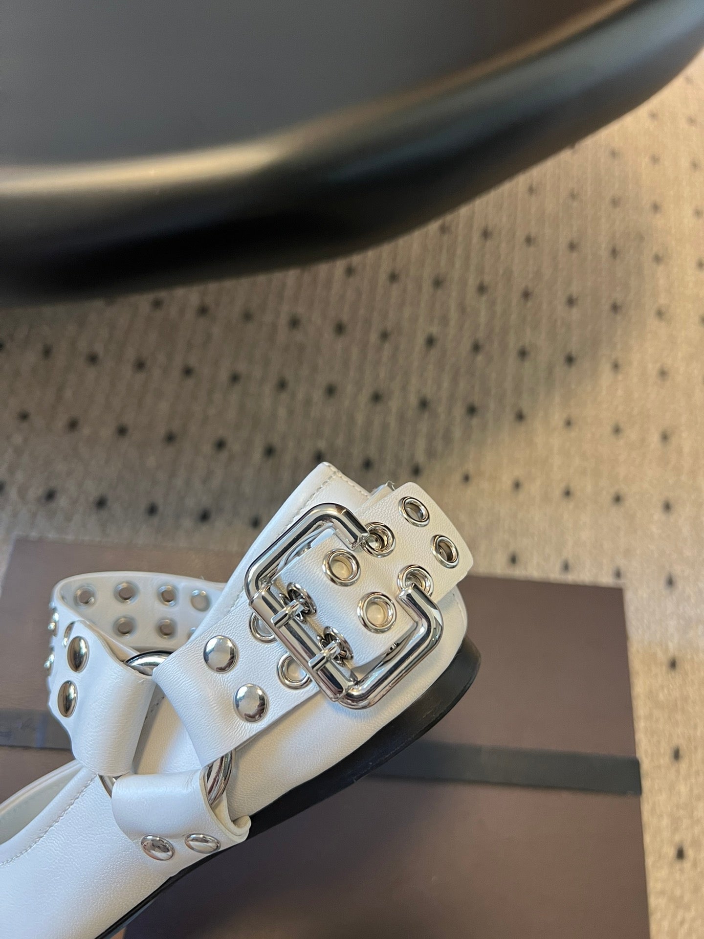 Alaia 25 Biker Ballet Flats White Calfskin 303734