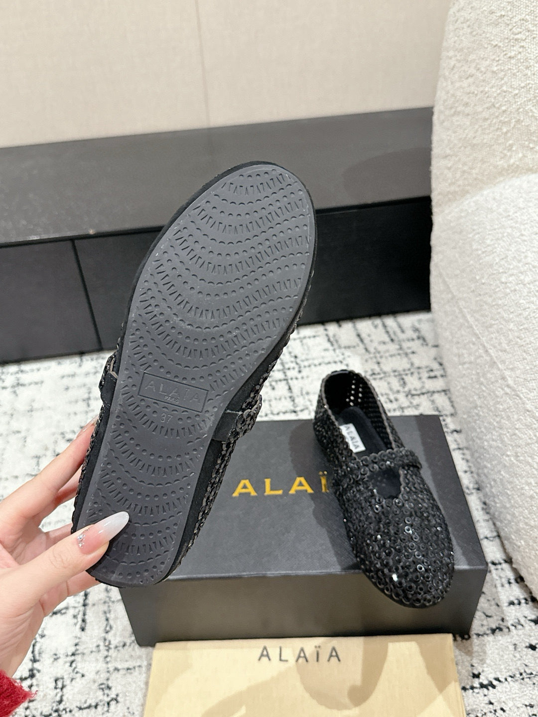 Alaia 25 Embellished Mary Jane Flats Black Suede 293178