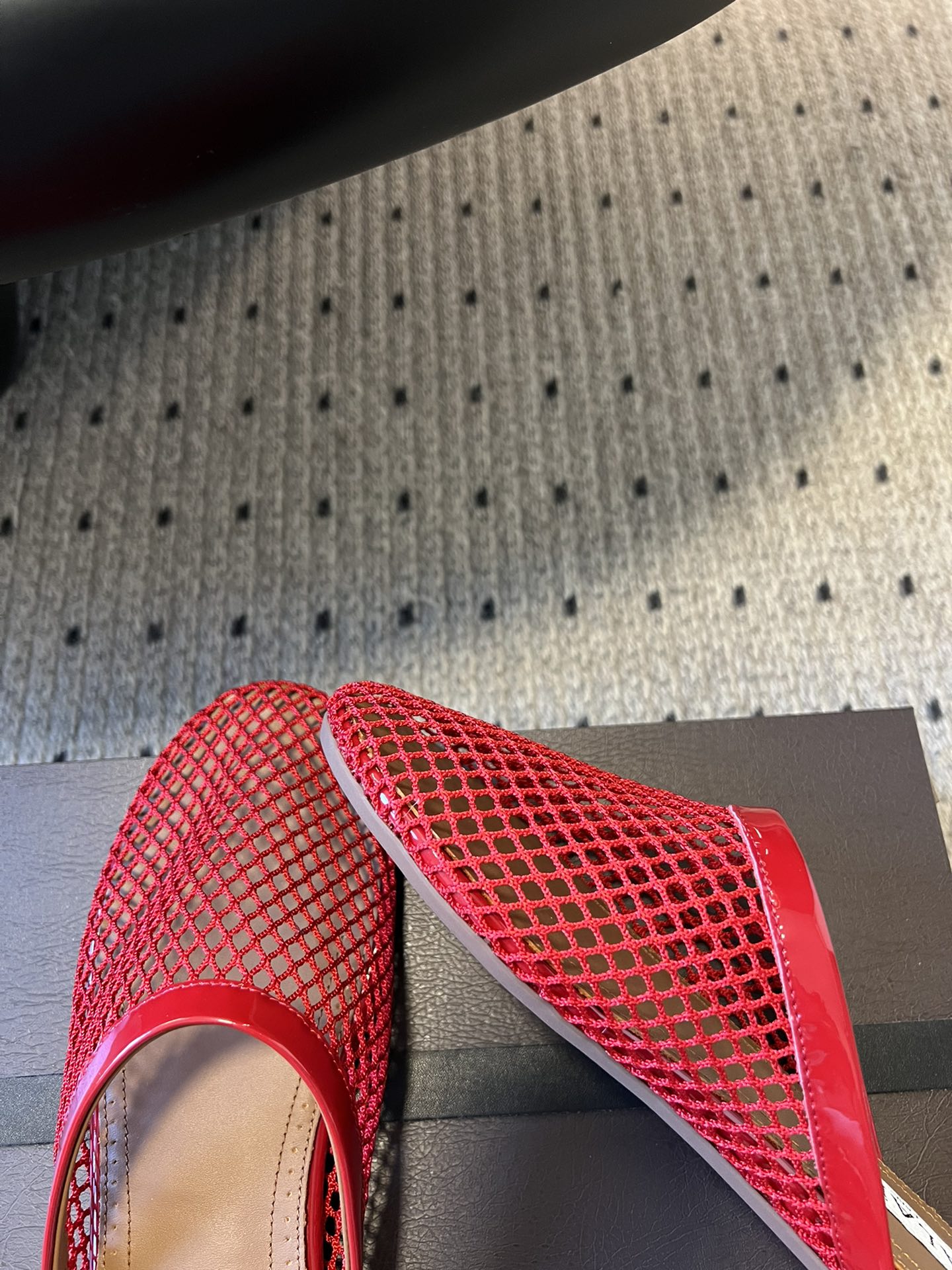 Alaia 25 Fishnet Flat Mules Red Lampskin 303682