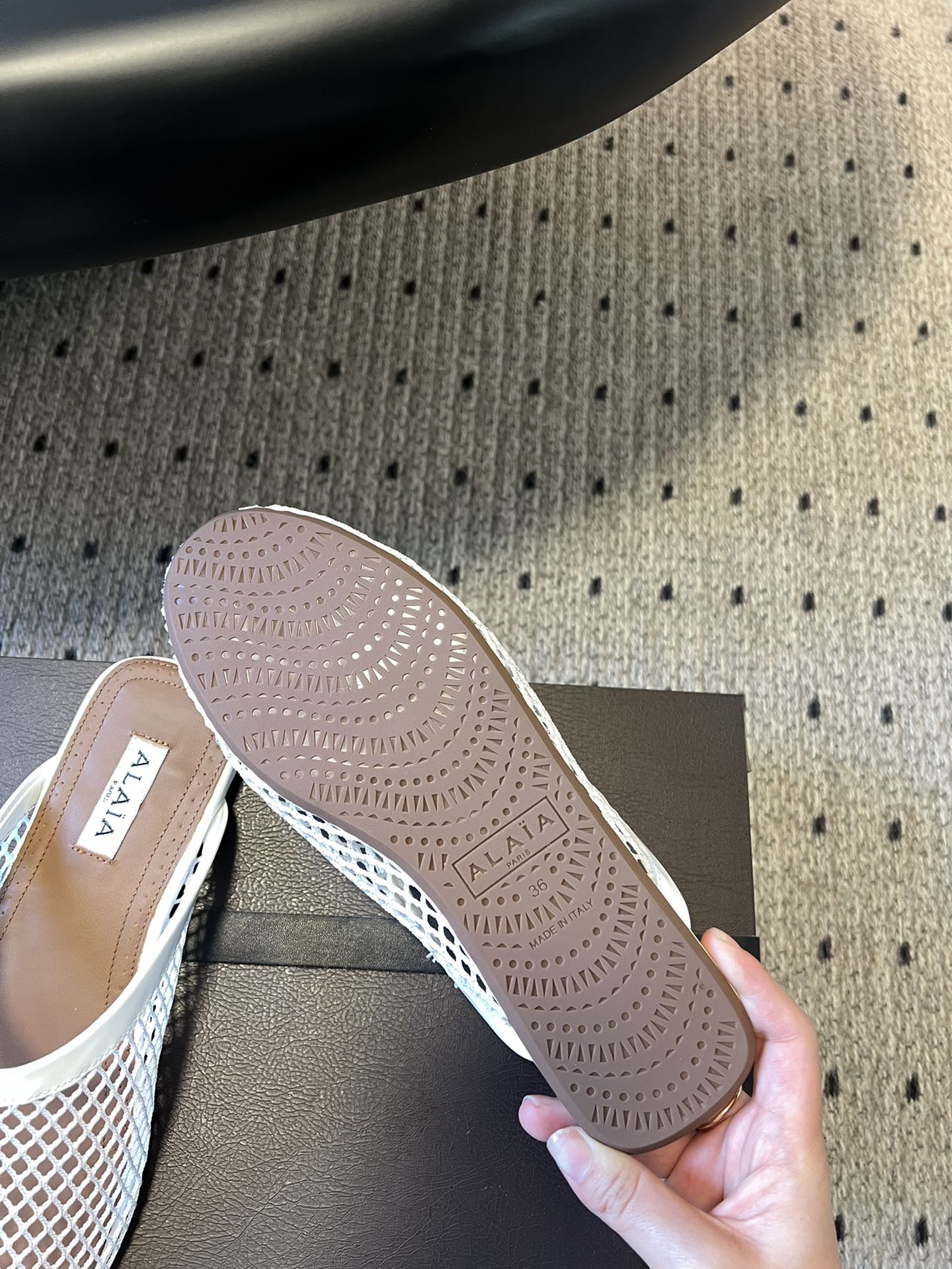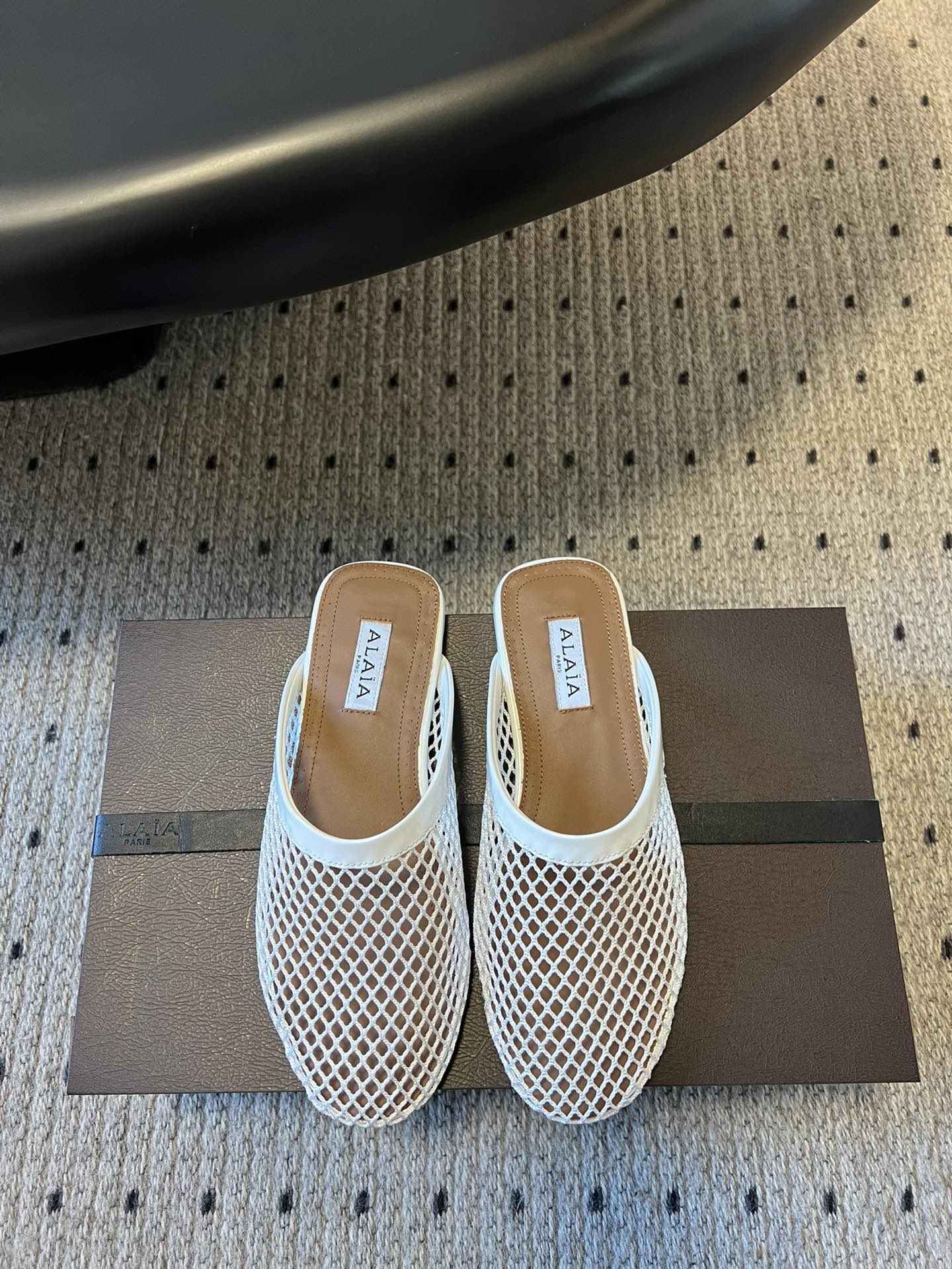 Alaia 25 Fishnet Flat Mules White Lampskin 303681