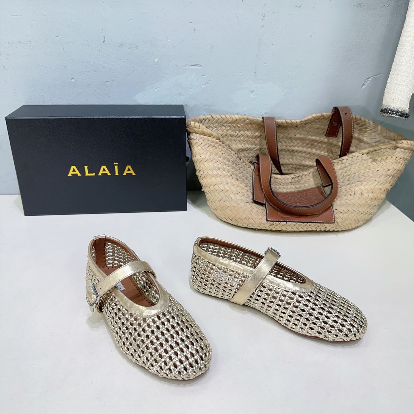 Alaia 25 Marry Janes Ballet Flats Gold Wool Sheepskin 300456