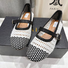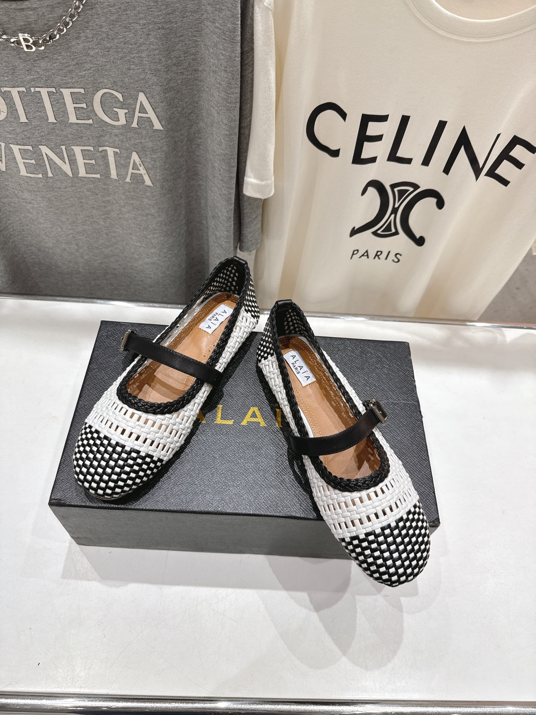 ALAIA MARY JANE FLATS white mix black woven calfskin pattent