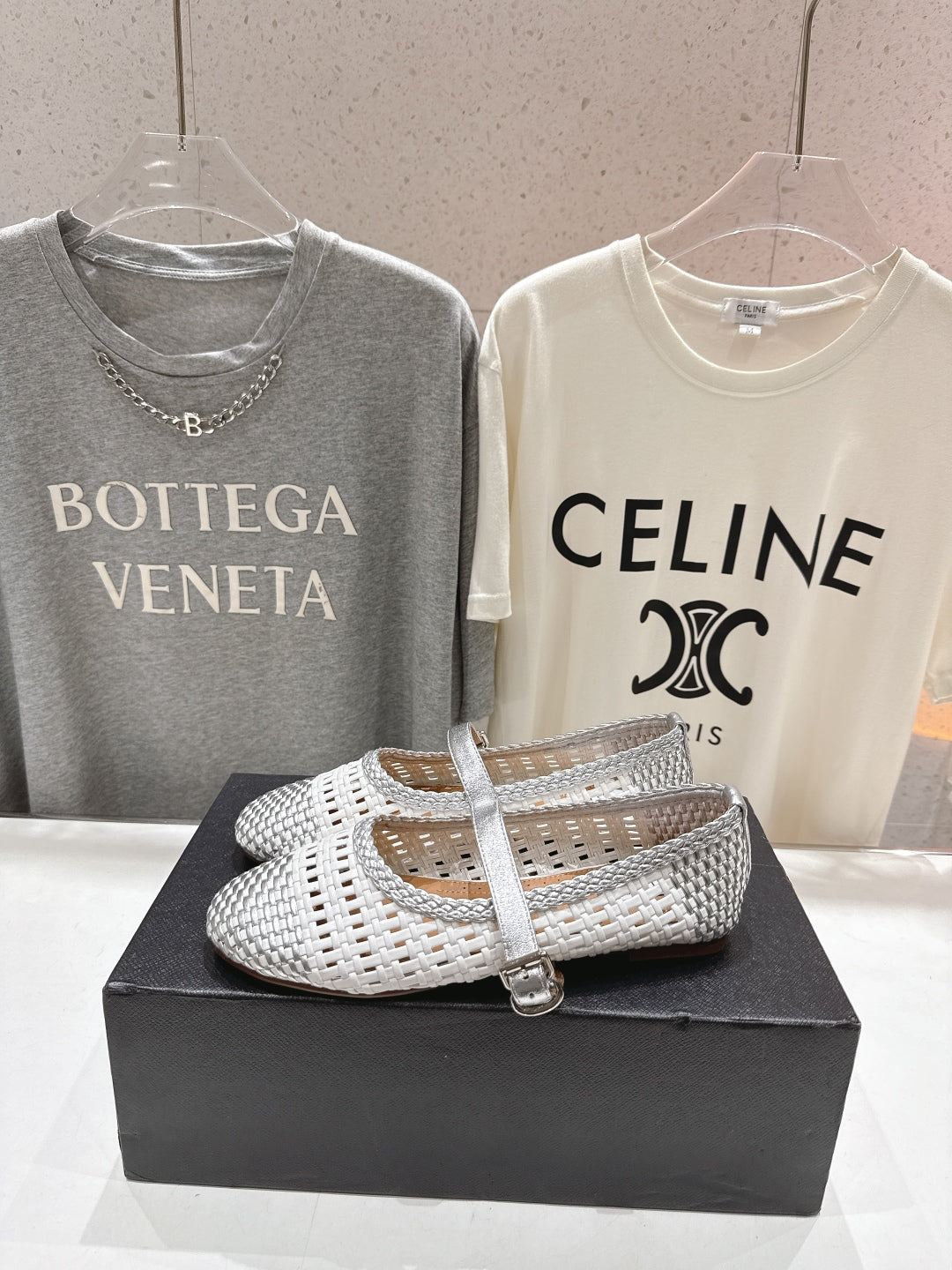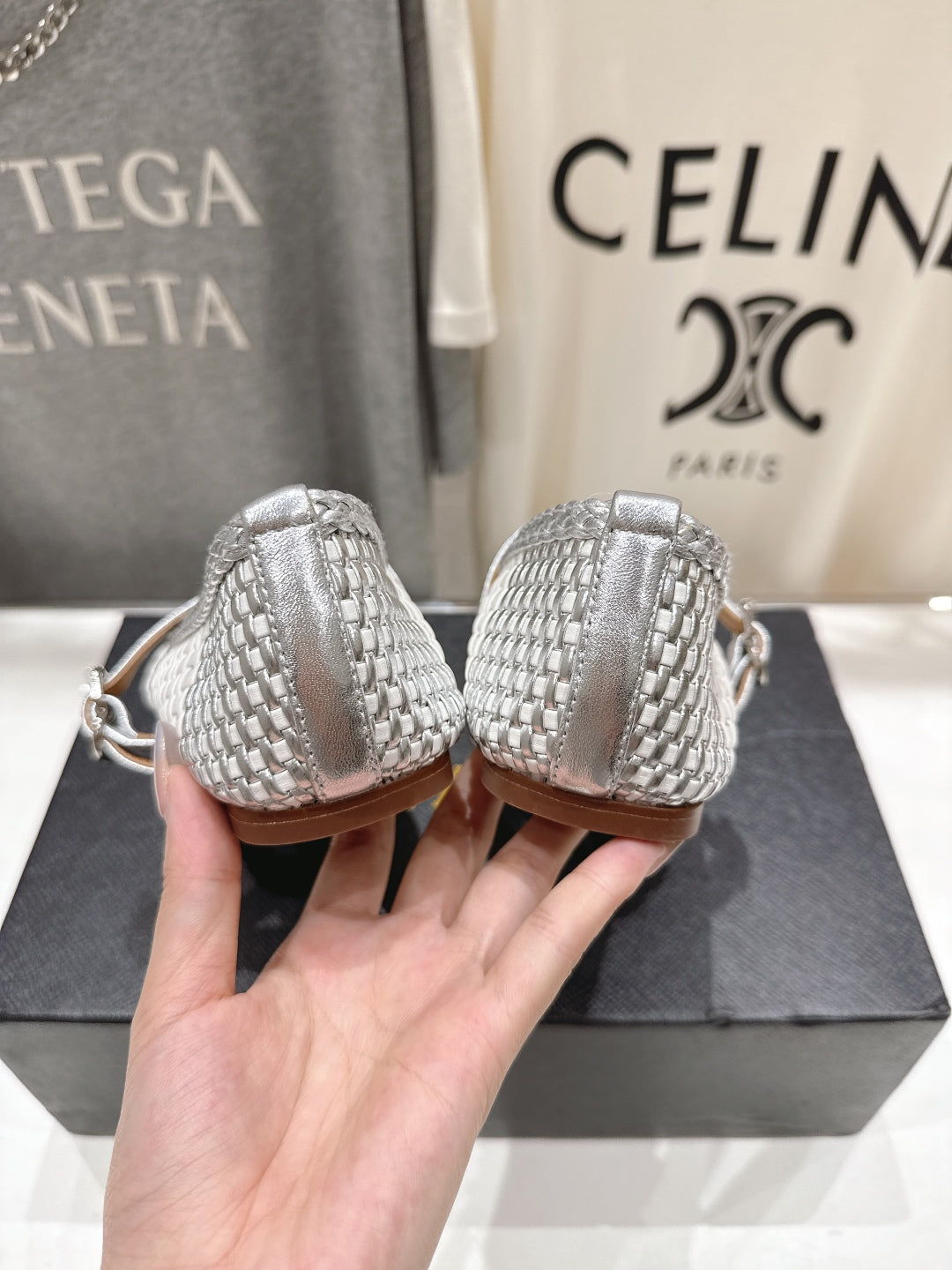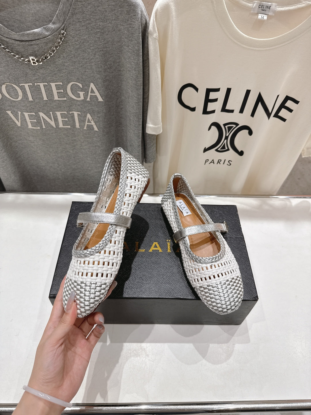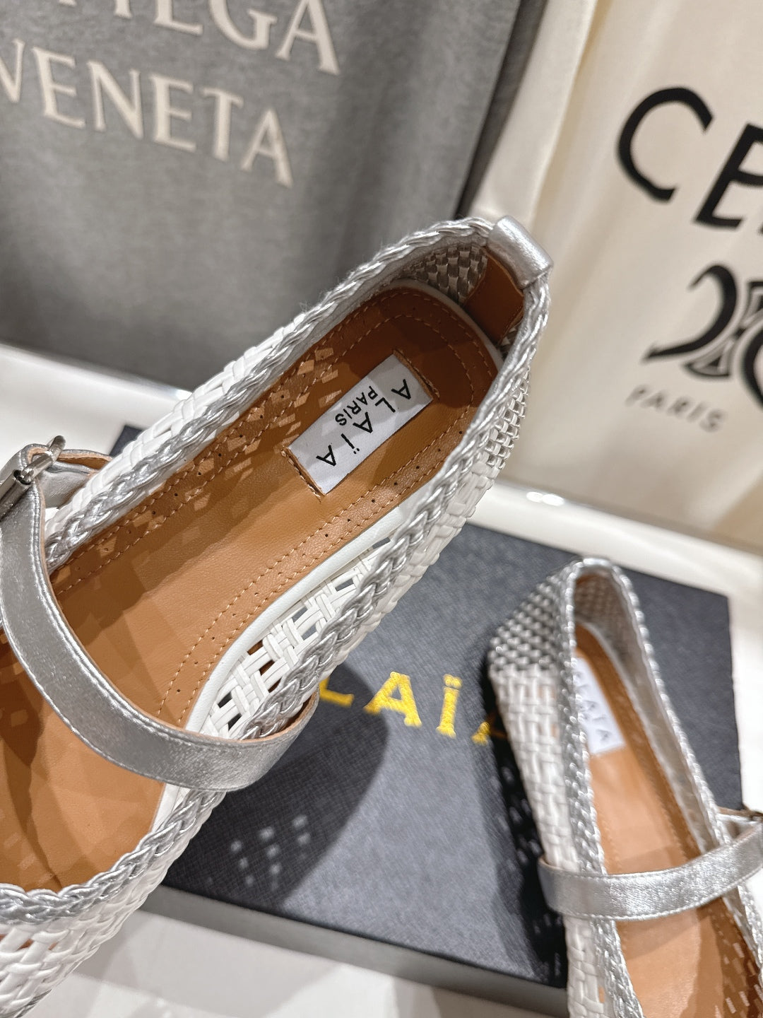 ALAIA MARY JANE FLATS white mix gray woven calfskin pattent