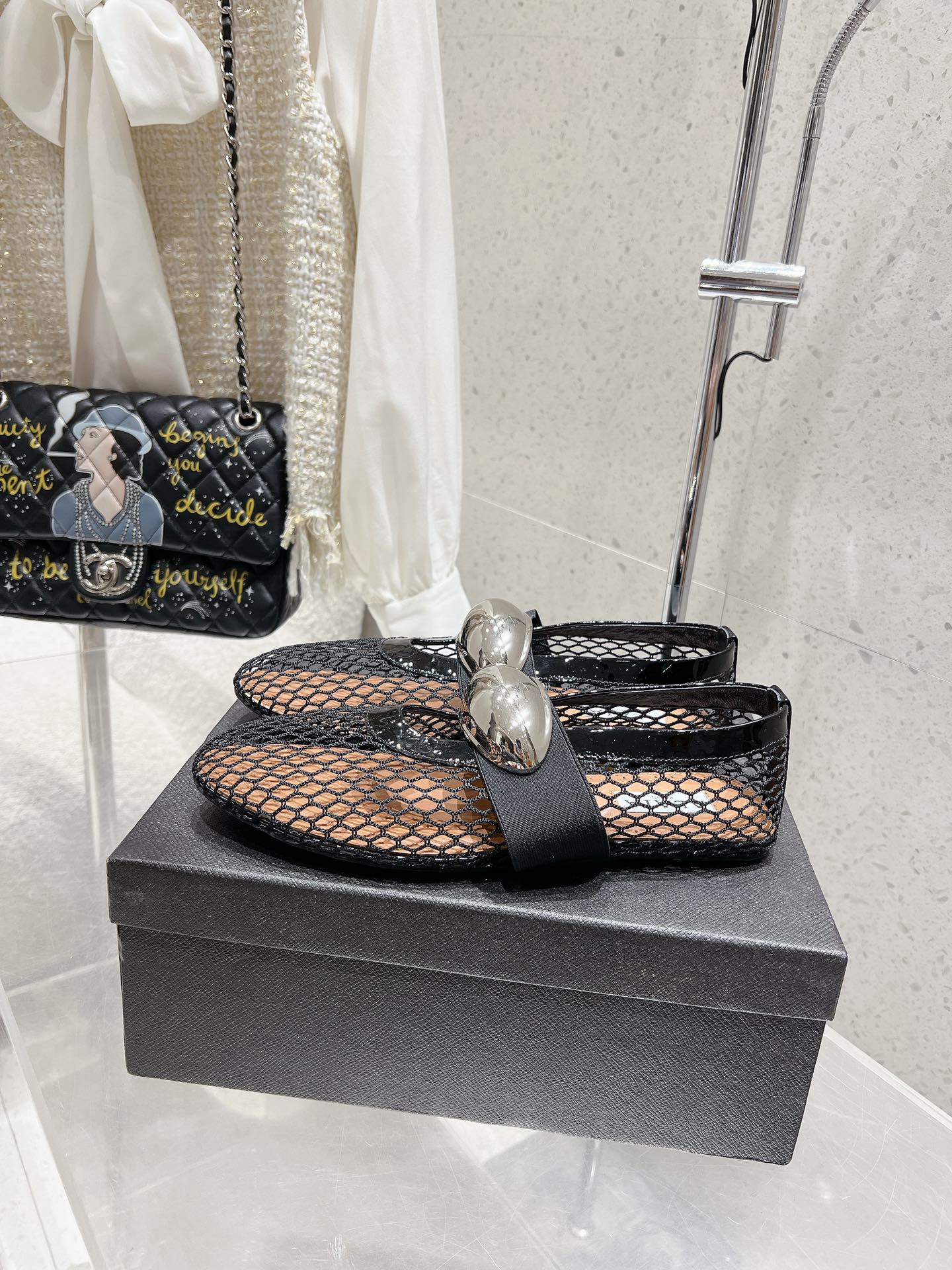 ALAIA MARY JANE SHOES IN BLACK MESH WITH BLACK - TONED HARDWARE