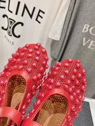 ALAIA PEARL MARY JANE SHOES IN CHERRY RED MESH AND CALFSKIN