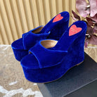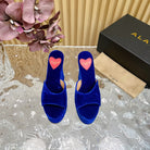 ALAIA PLATFORM WEDGE IN COBALT BLUE VELVET WITH HEART EMBROIDERED