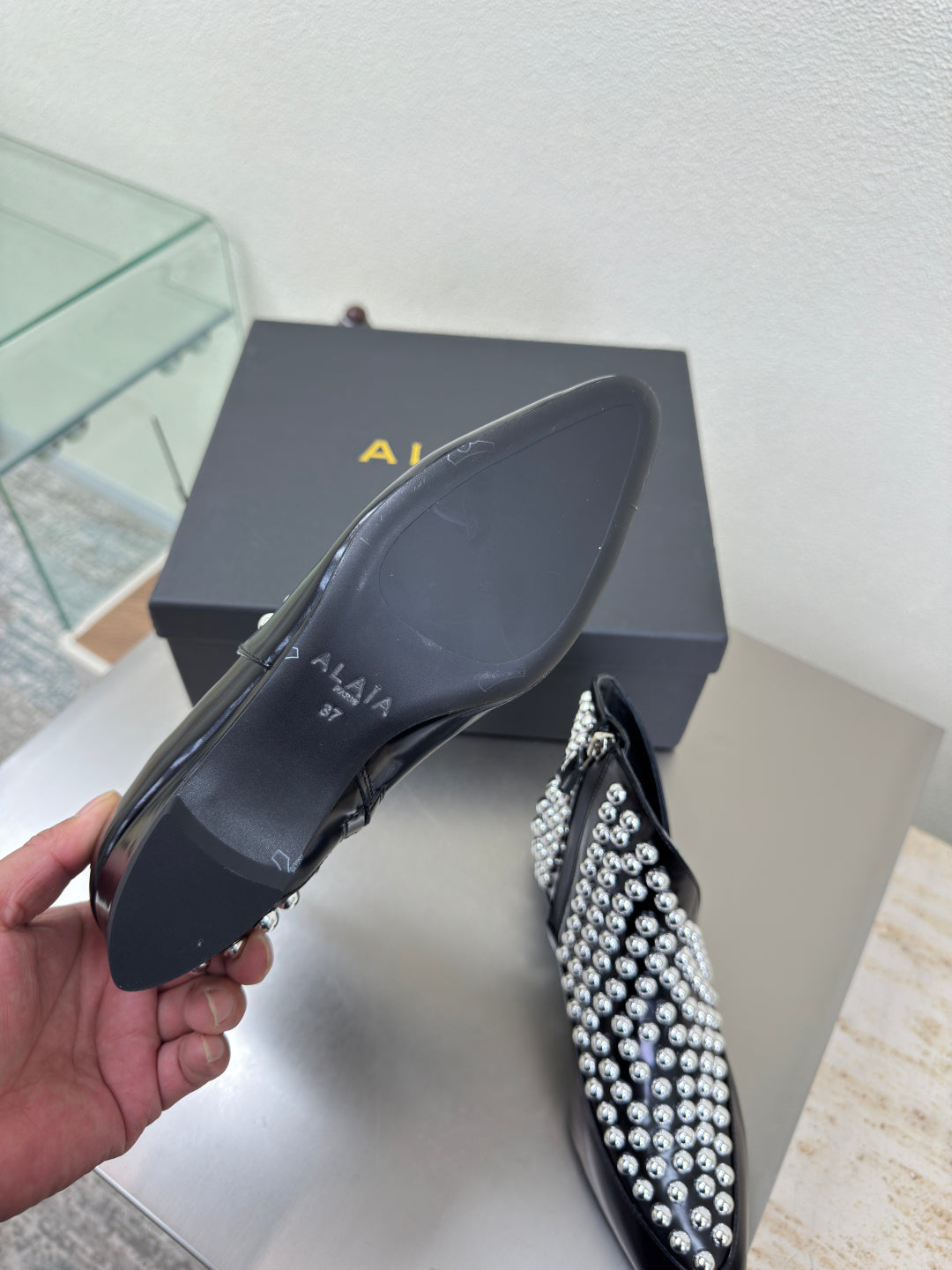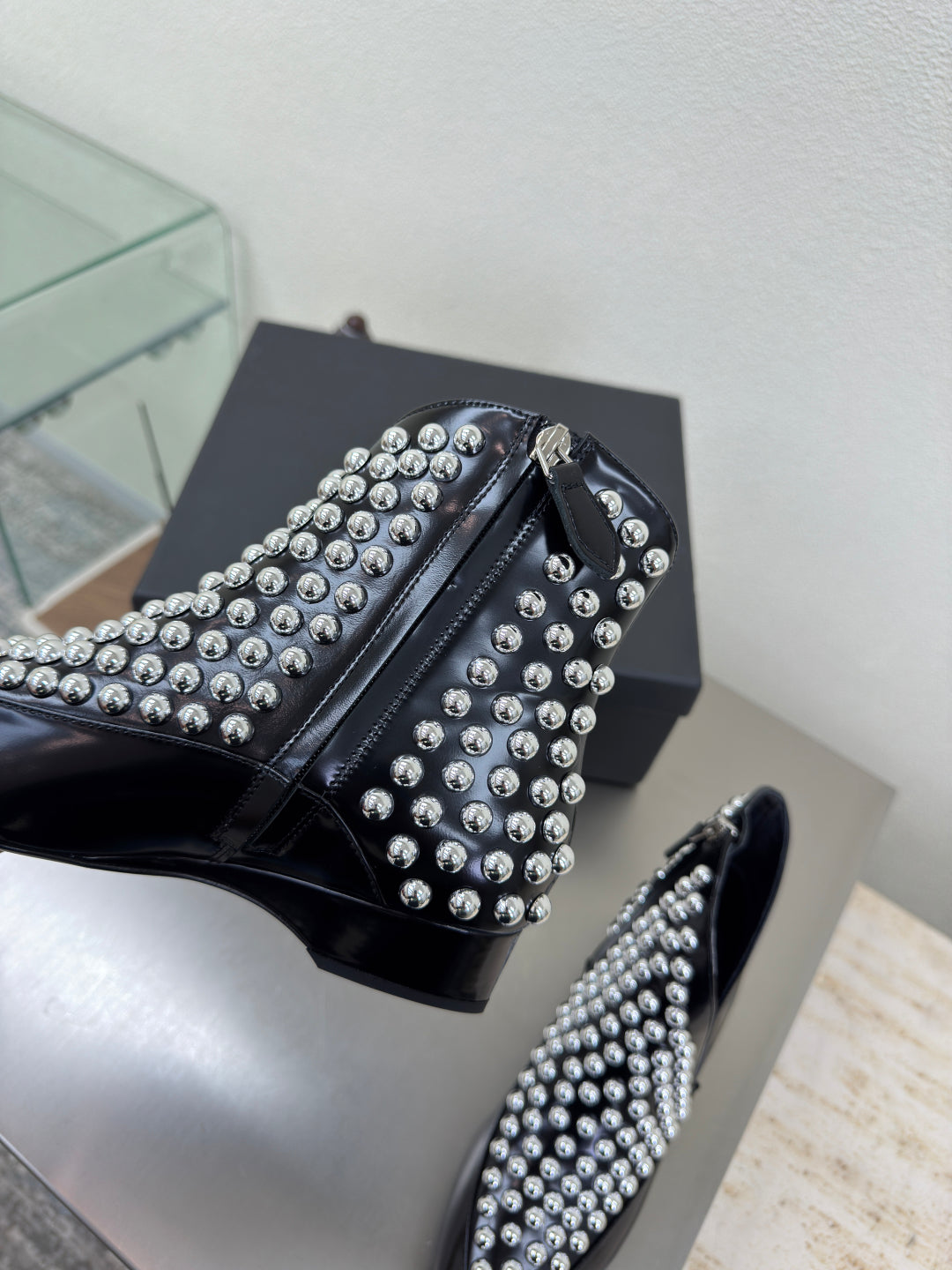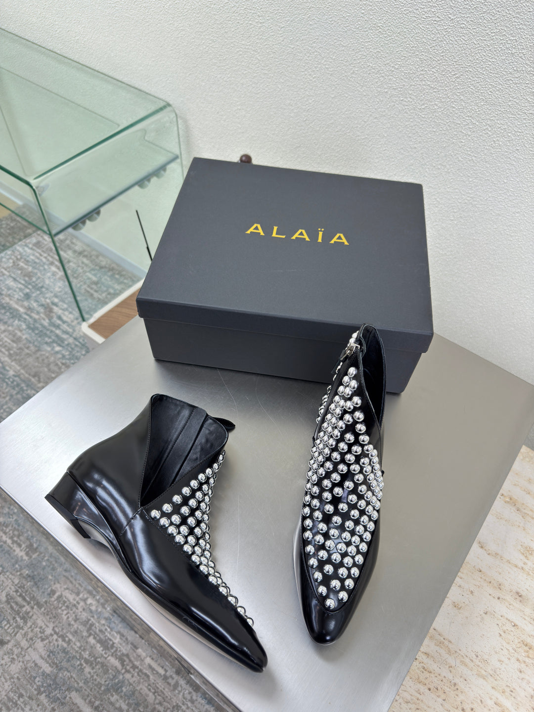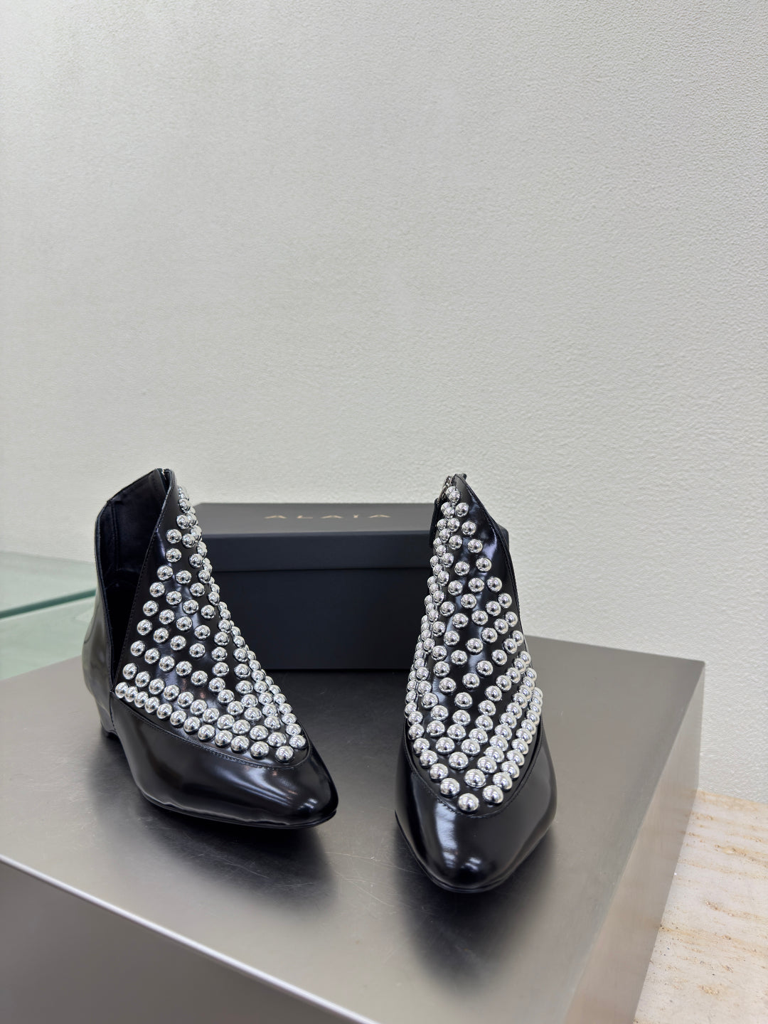 ALAIA Rivet ankle boots black cowhide leather 471093