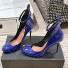 ALAIA ROUND-TOE HIGH HEELS 10 CM IN NAVY BLUE CALFSKIN