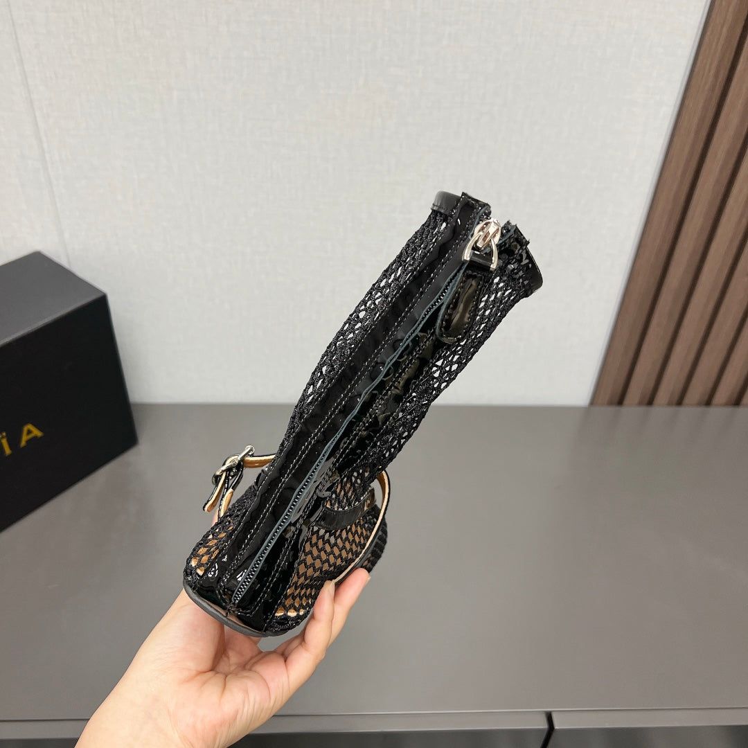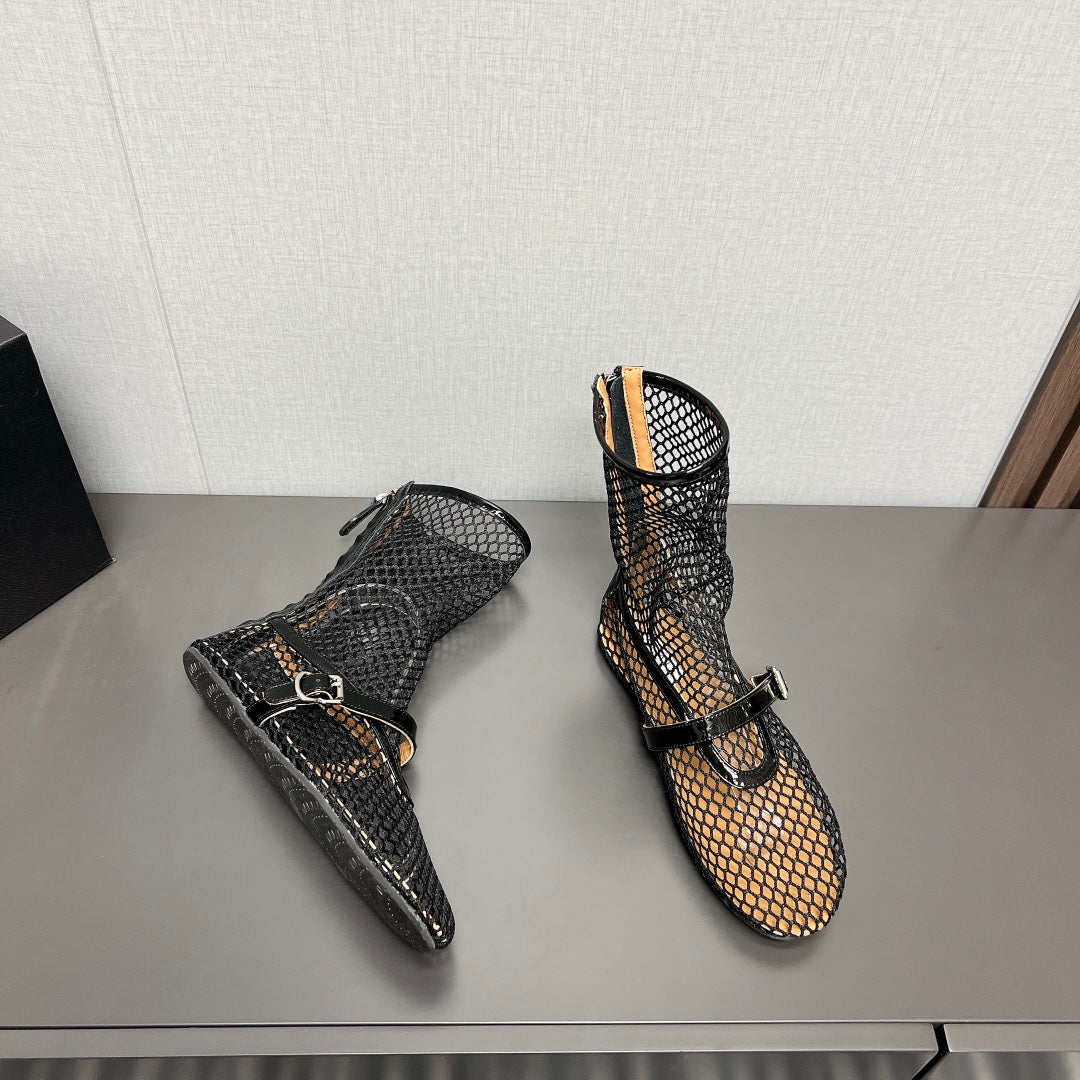 ALAIA SHORT BOOTS IN BLACK MESH FISHNET