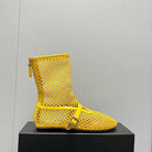 ALAIA SHORT BOOTS IN LEMON YELLOW MESH FISHNET
