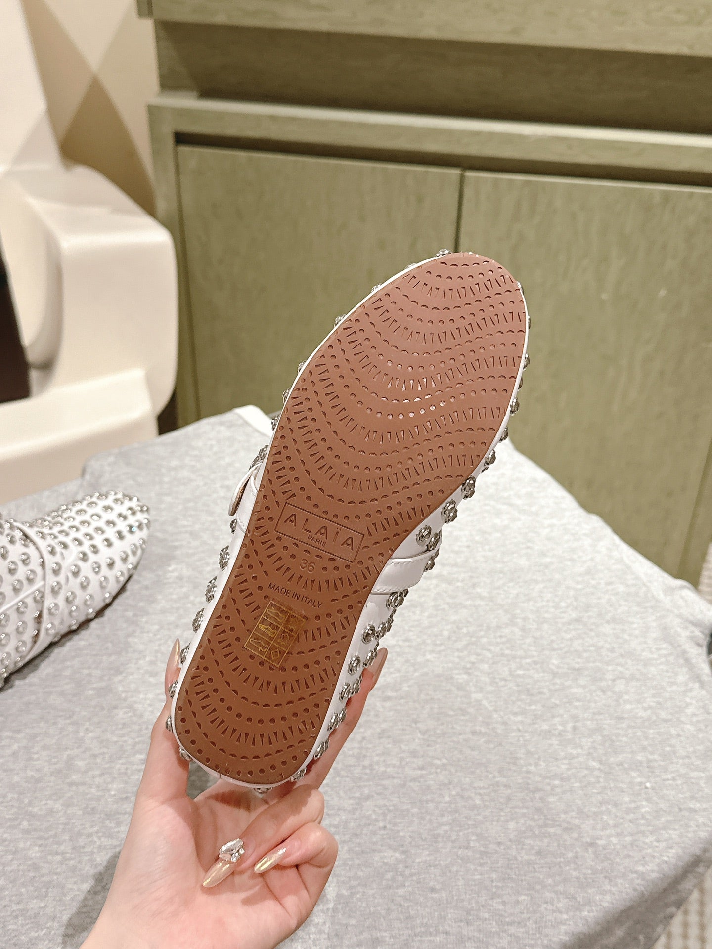 ALAIA SHORT BOOTS IN WHITE LAMBSKIN ATTACH RHINSTONES