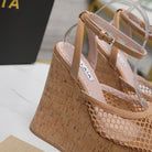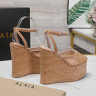 ALAIA WEDGE SANDAL IN FRENCH BEIGE MESH AND BEIGE RUBBER