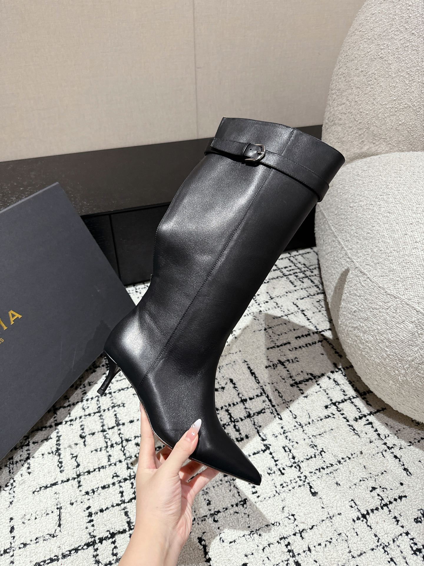 Alaila High Boots 60mm In Black Calfskin 916745