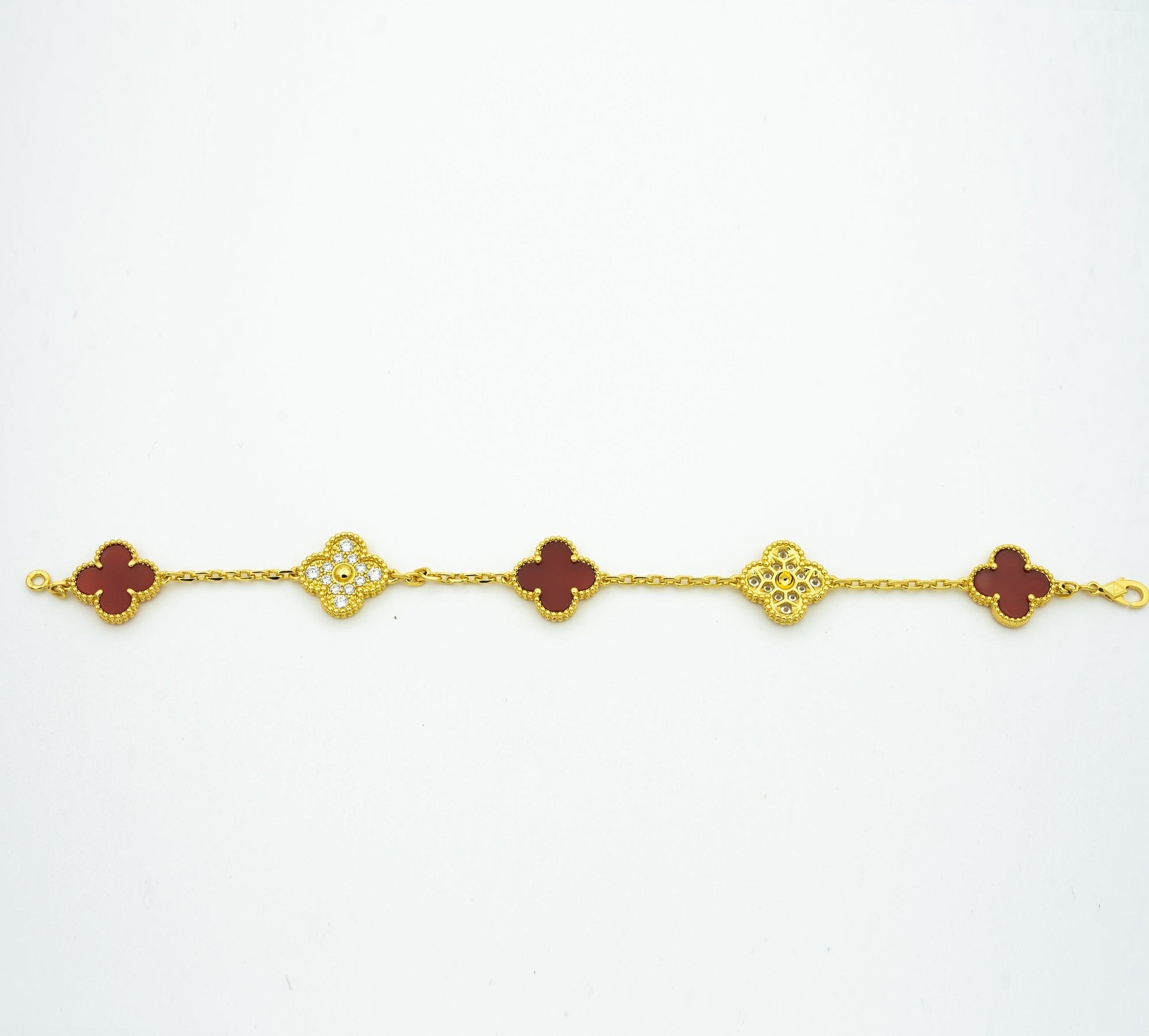 CLOVER BRACELET 5 MOTIFS CARNELIAN DIAMOND