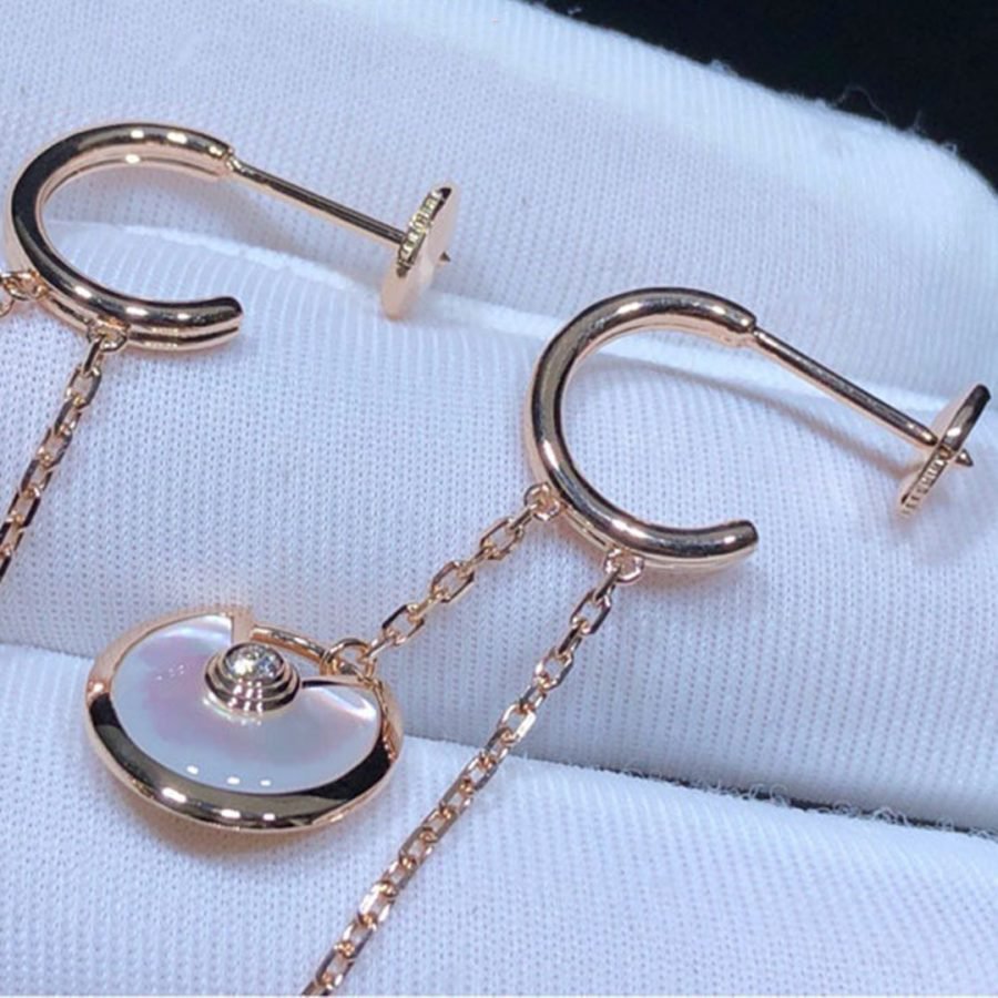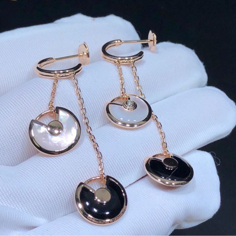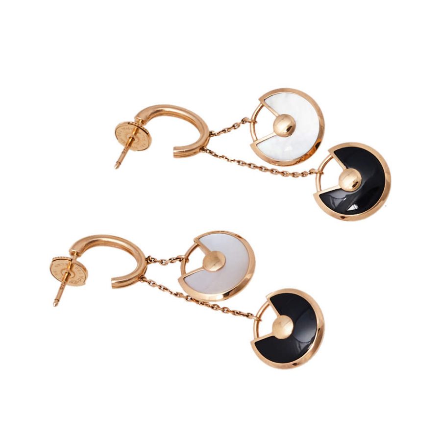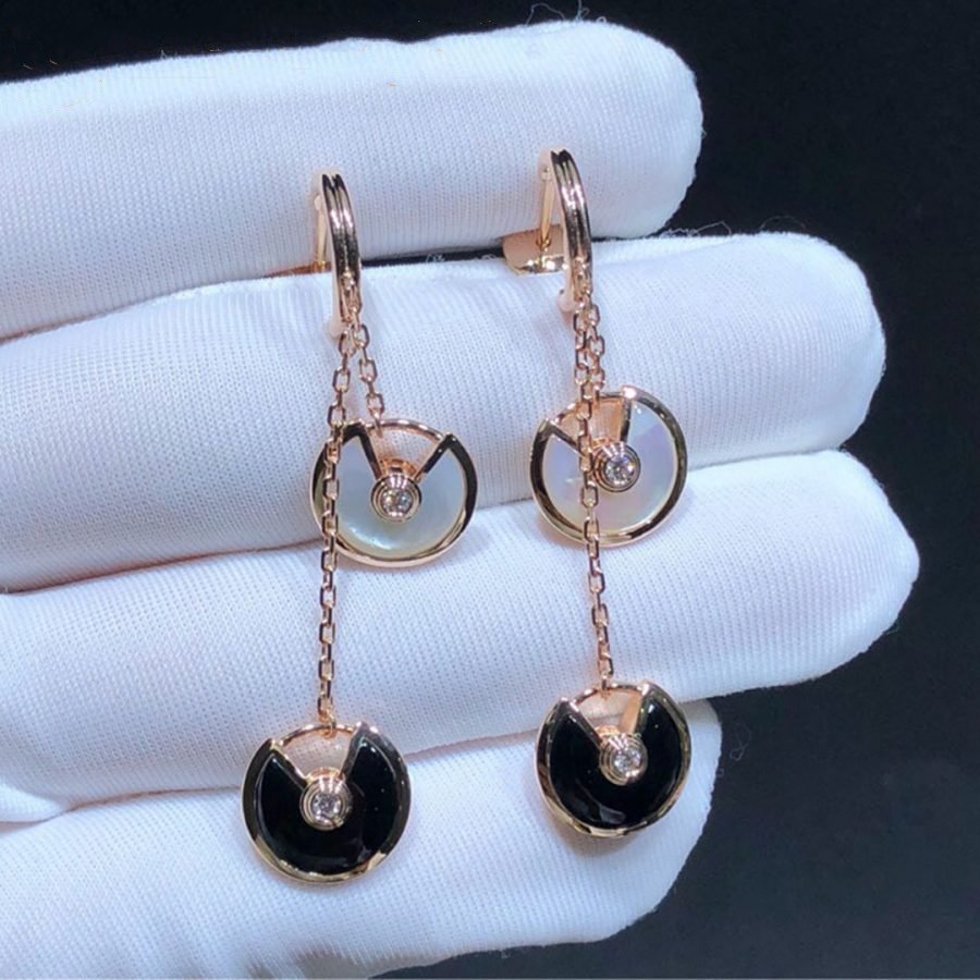 AMULETTE DOUBLE DROP EARRINGS MOP ONYX PINK GOLD