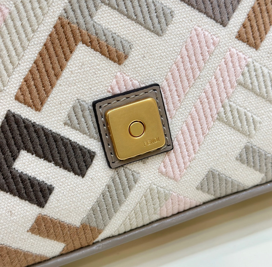 BAGUETTE CANVAS 27 BAG GREY STRAP WITH MULTICOLOUR EMBROIDERY GOLD HARDWARE