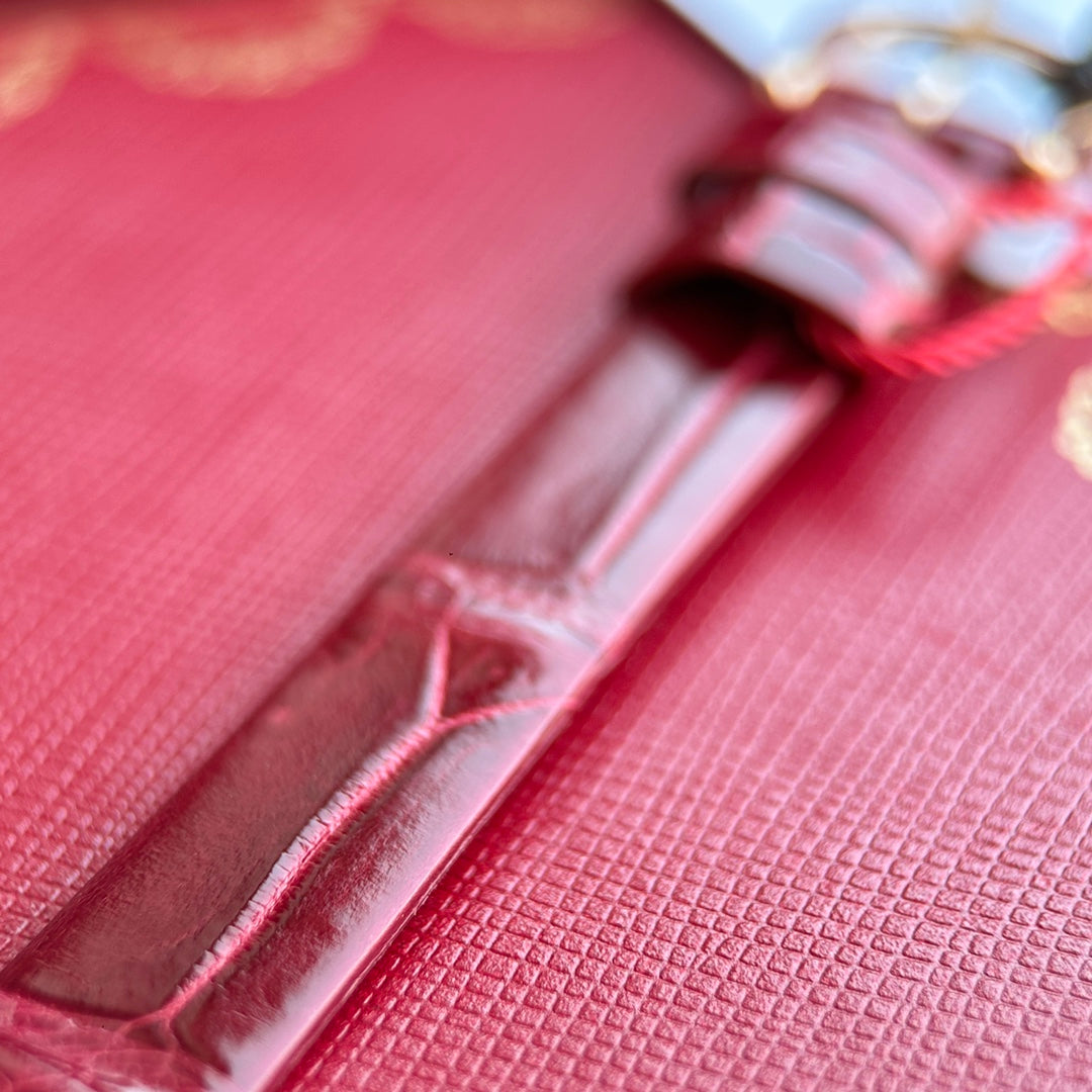 Baignoire 23mm Pink Gold Case Diamond Bezel Red Leather Strap