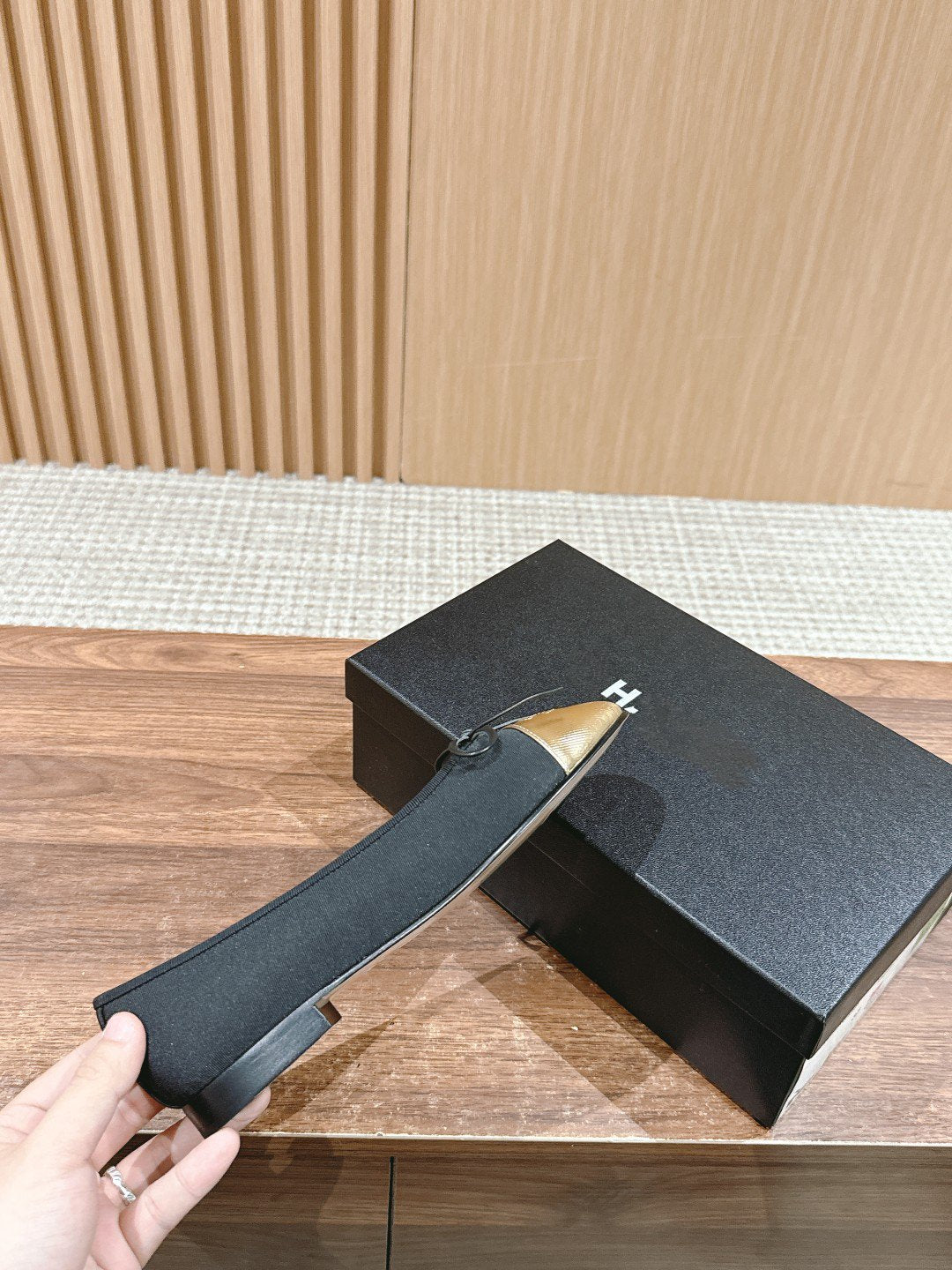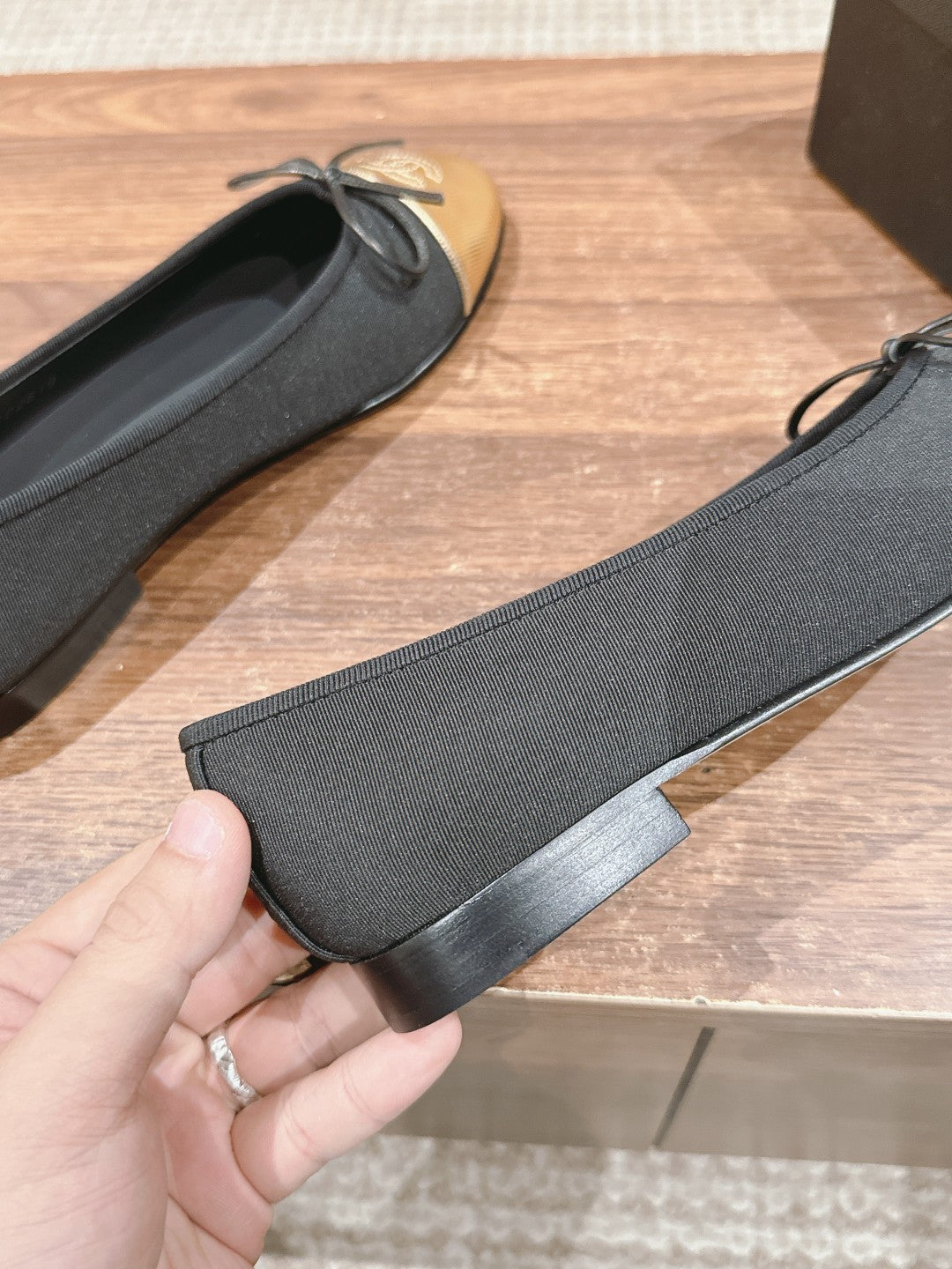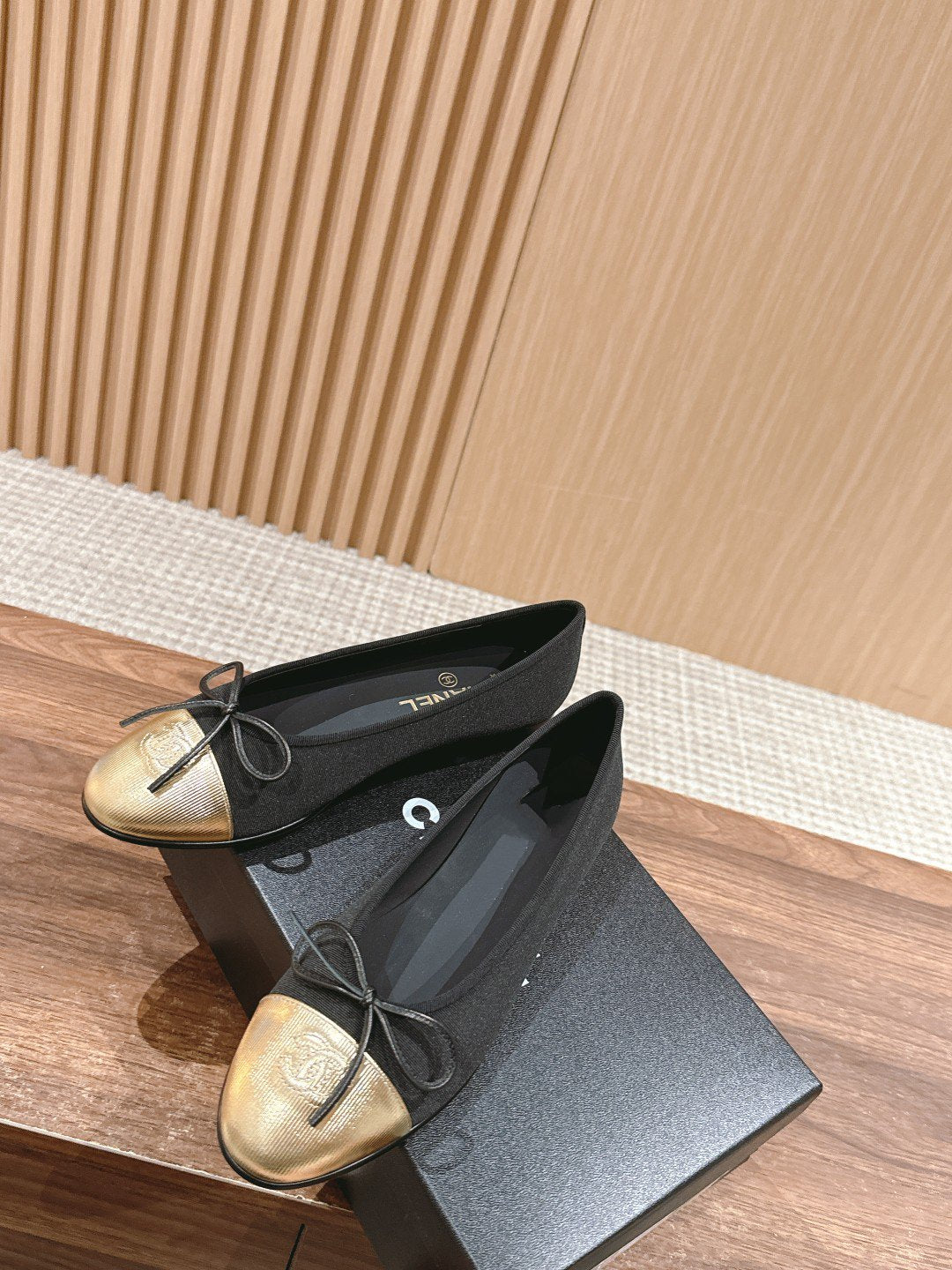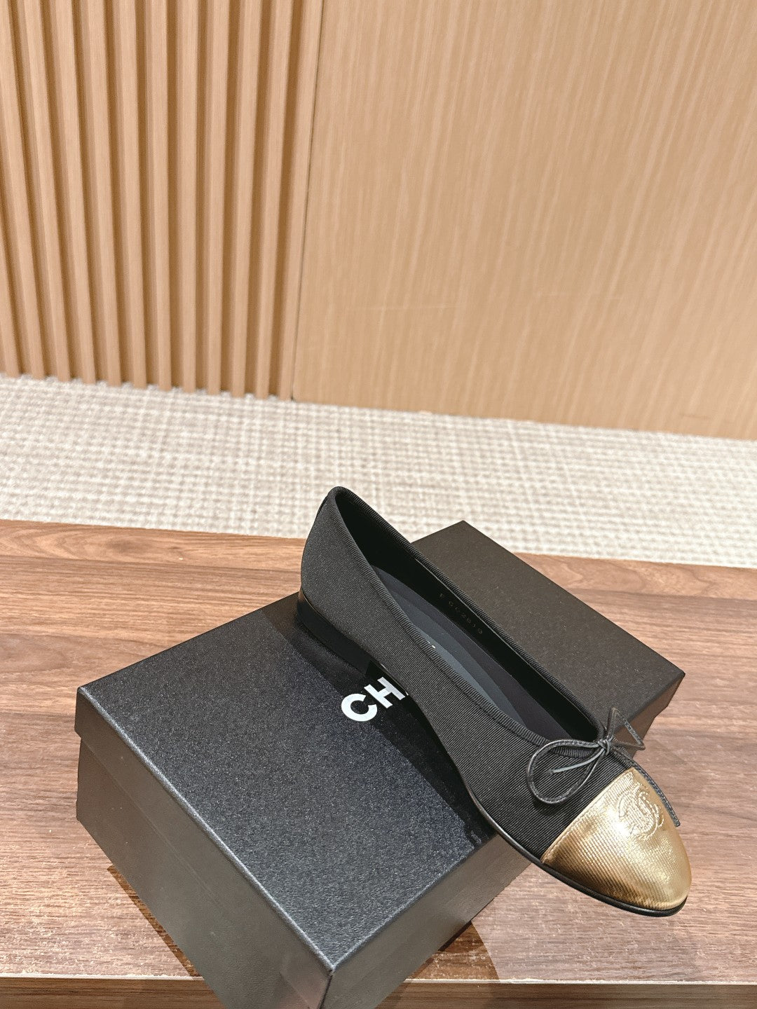 ballet flat black grosgrain gold metalic lambskin