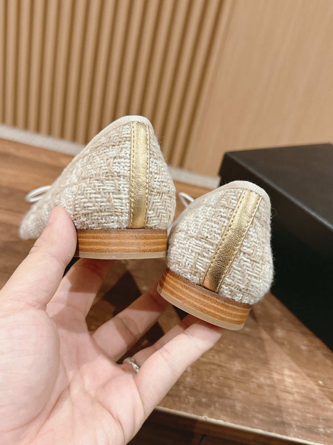 ballet flat grey textile gold metalic lambskin