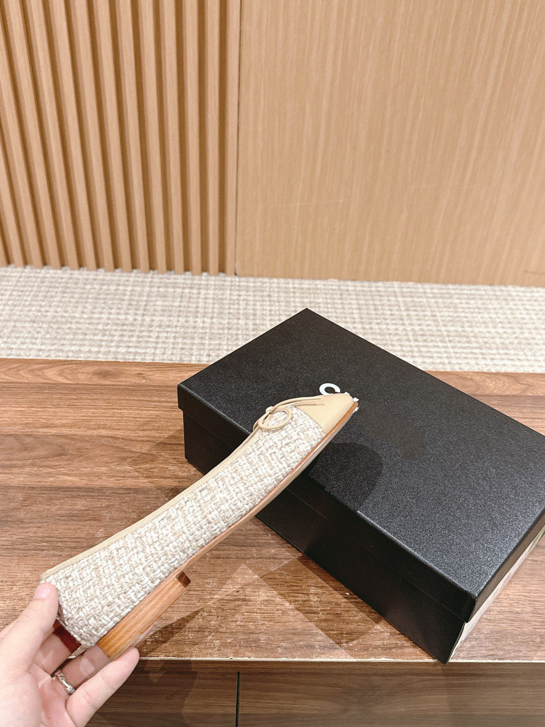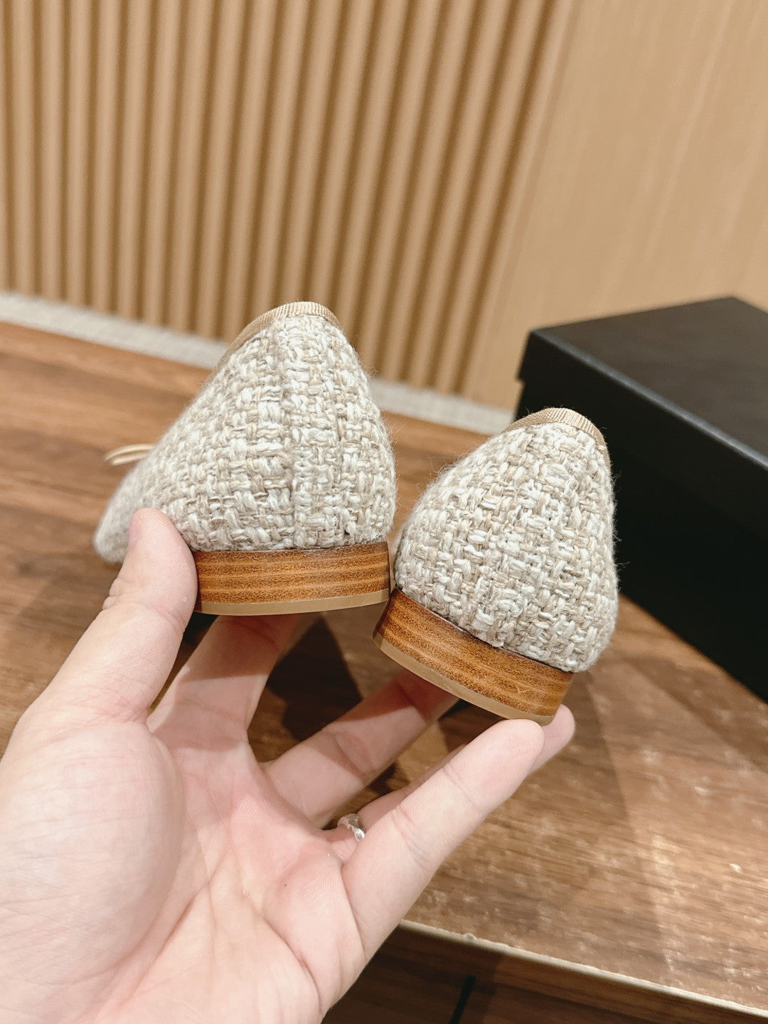 ballet flat white grey tweed beige lambskin