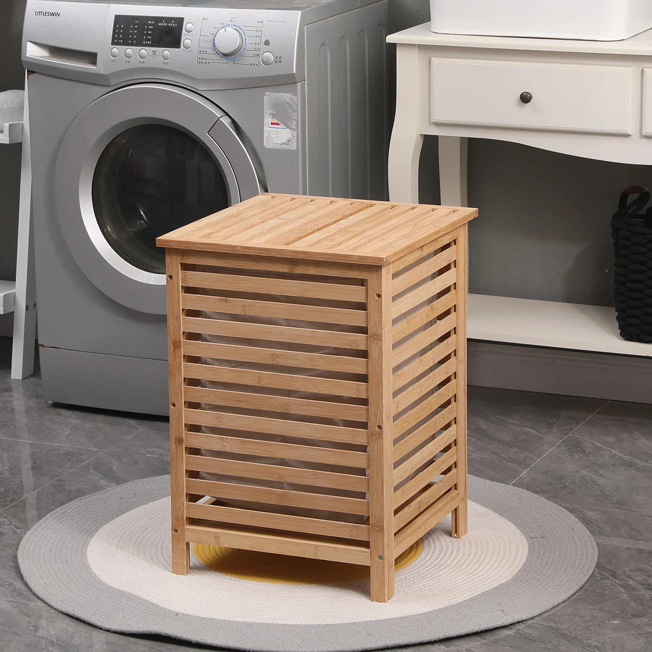 ✔️ 1 x **Bamboo Laundry Hamper**