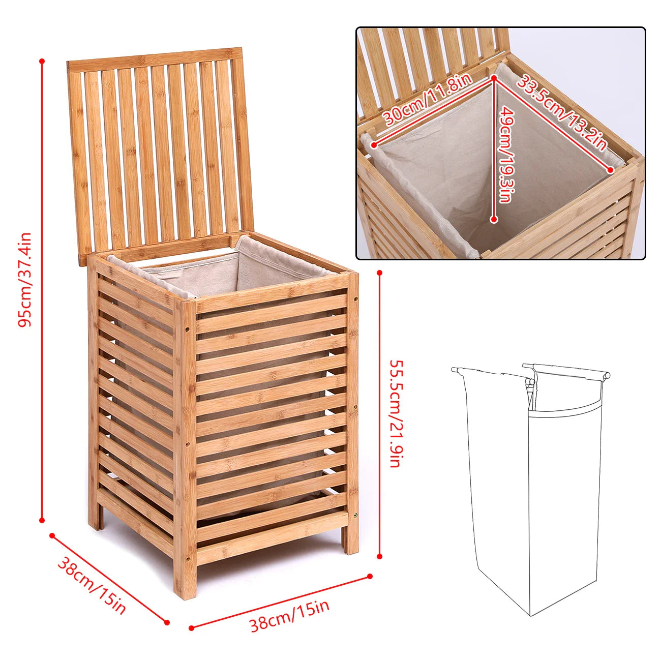 Bamboo Laundry Hamper – 79L Large Capacity with Lid & Removable Liner Bag – Space-Saving Slim Laundry Basket
