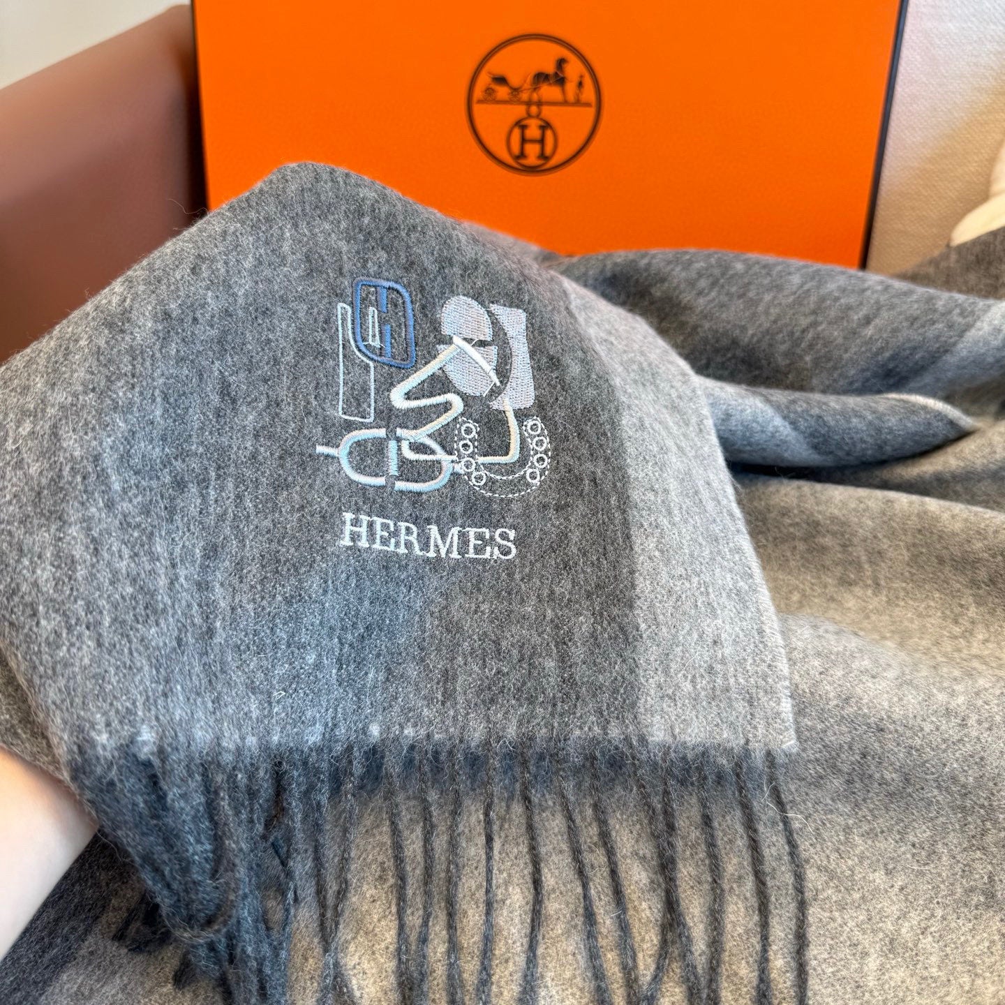 BBR Classic Embroidered Scarf 185CM Gray Cashmere 292824