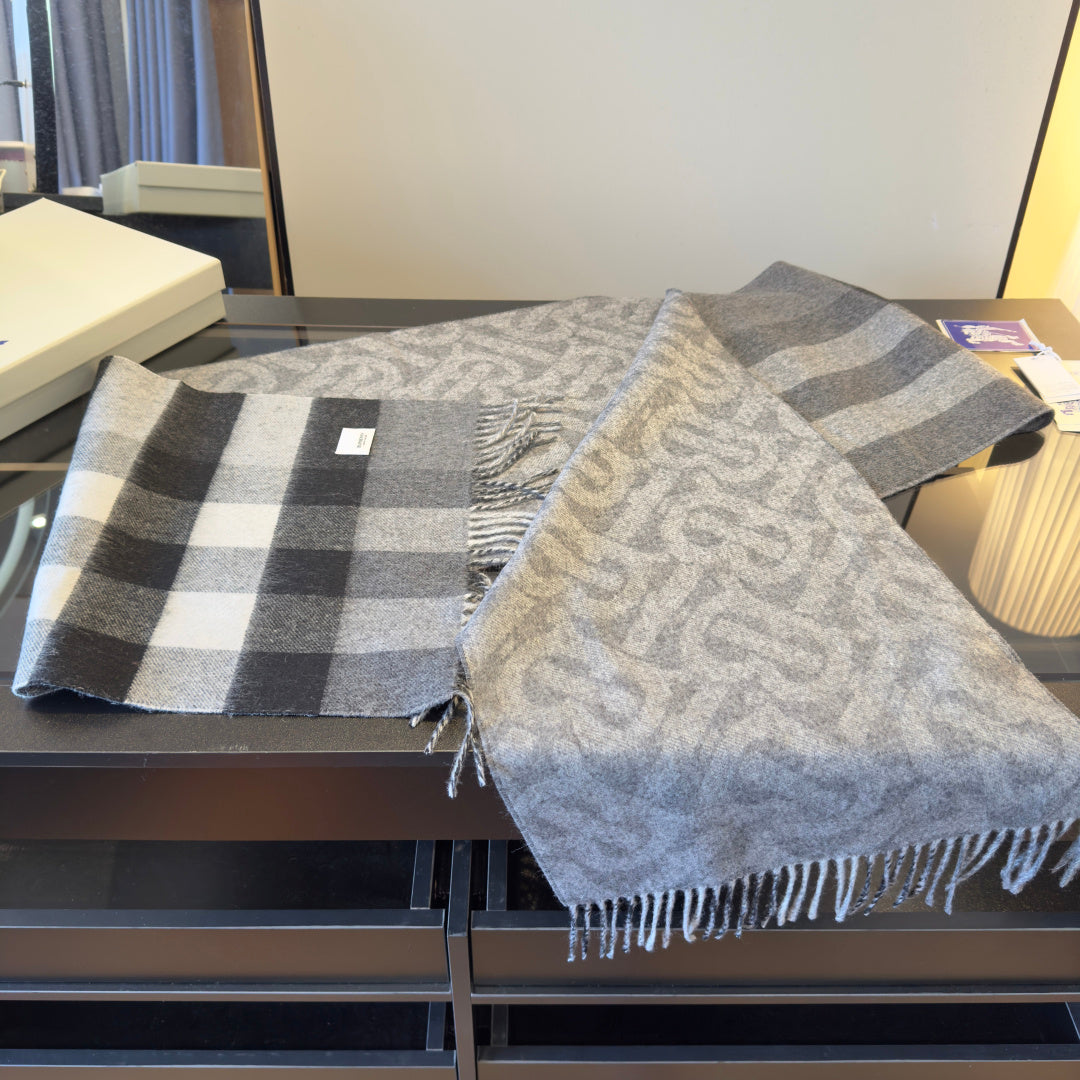 BBR Long Scarf 200CM Gray Black Cashmere 293424