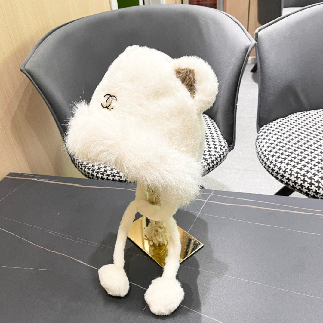 • Women's Hat with plush material and pom-pom design, featuring cute bunny ears, ideal for winter.
