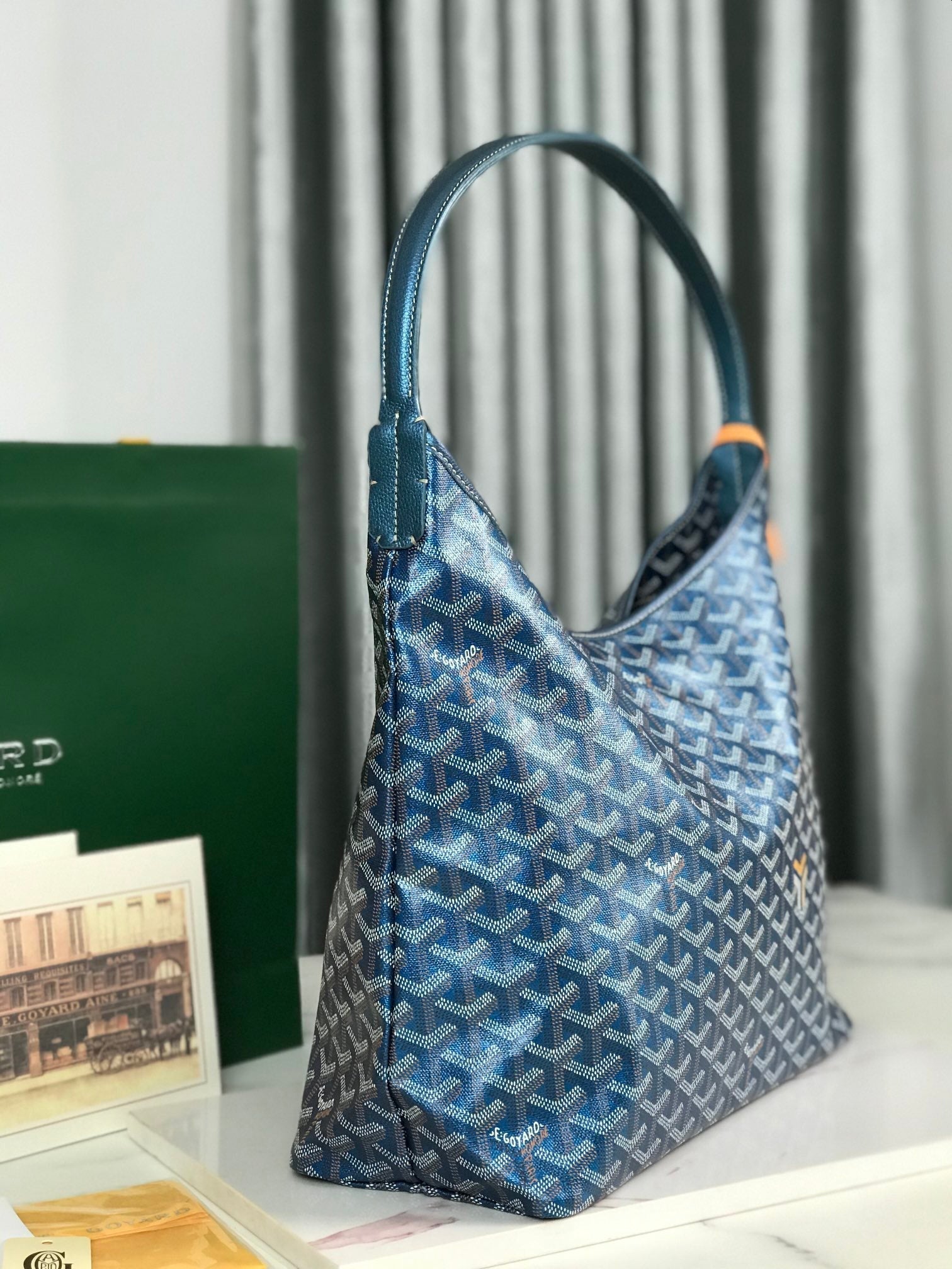 Bohème Hobo Bag 42cm Deep Blue Canvas Chevroches Calfskin