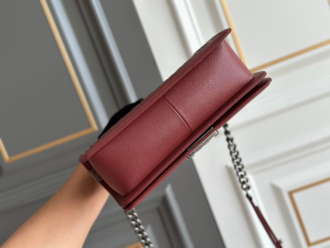 boy medium 25 wine quilted caviar ruthenium hardware