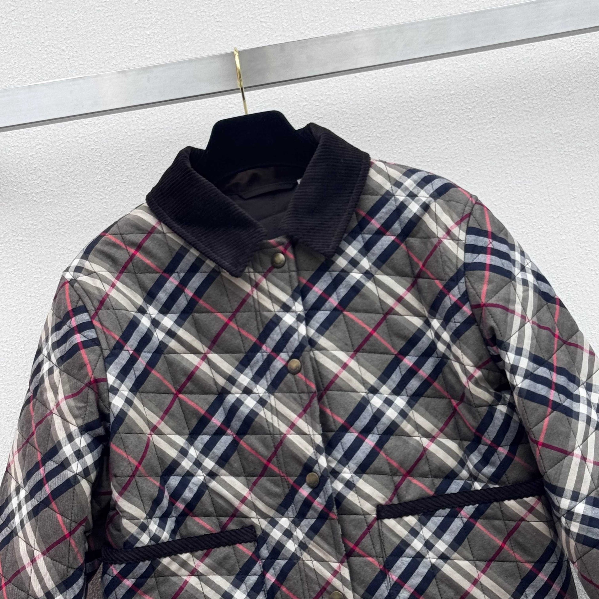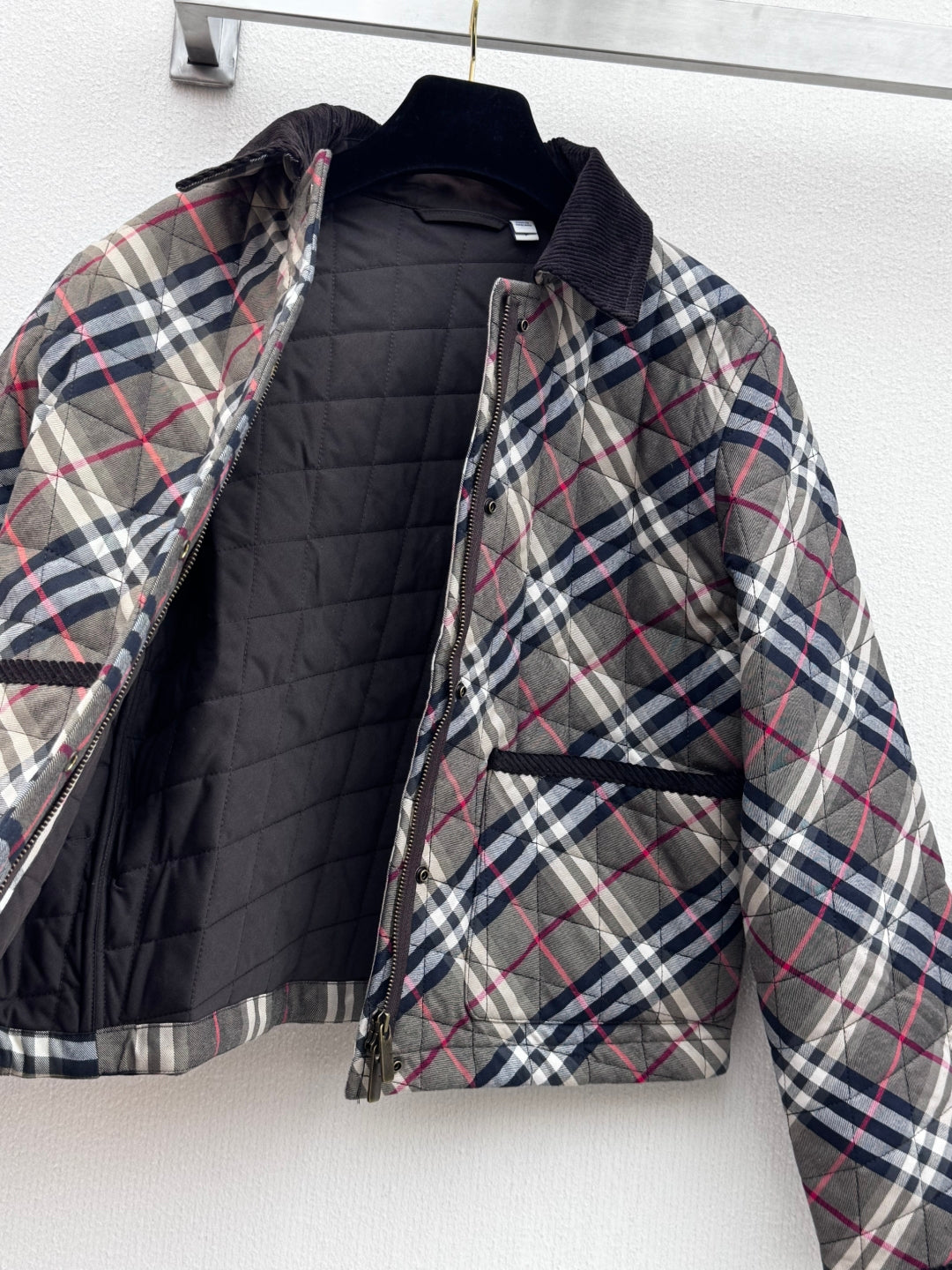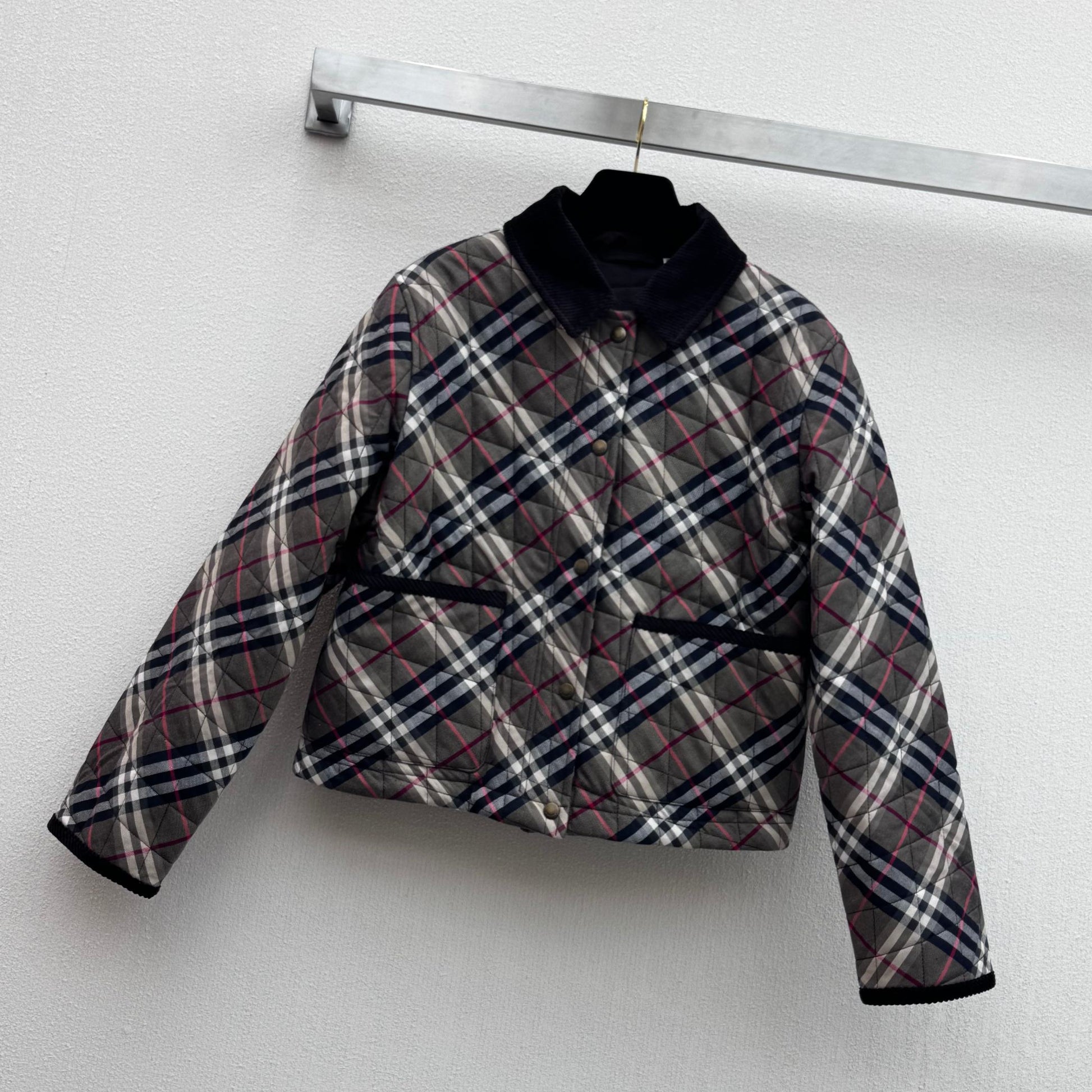 Burberry 25 Quilted Cropped Jacket Dark Grey Cotton