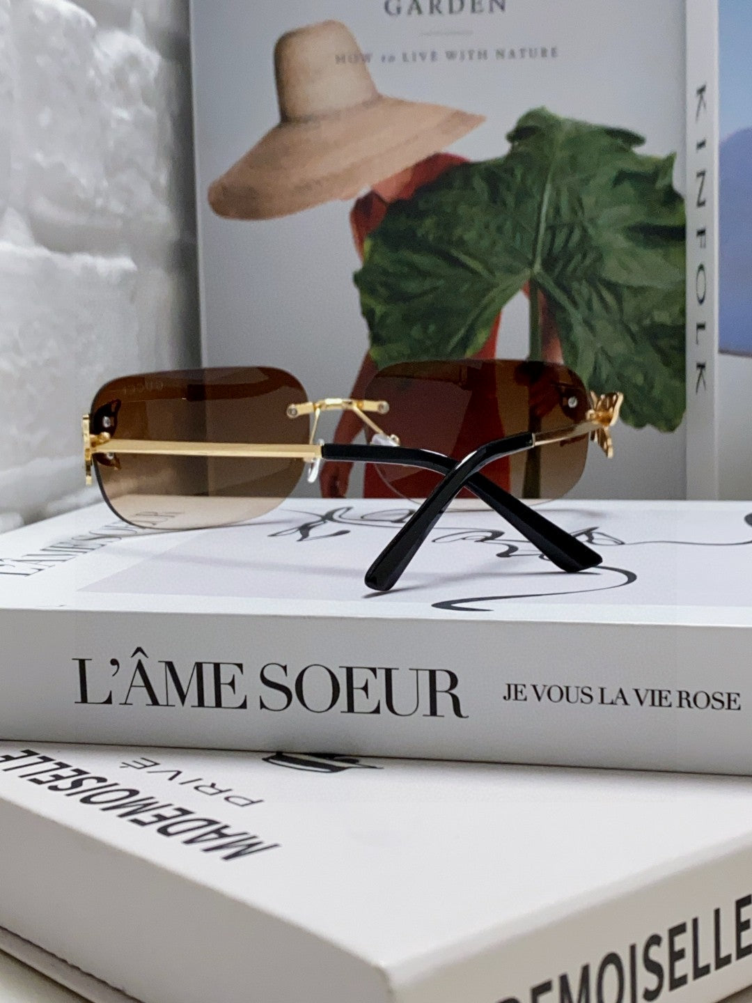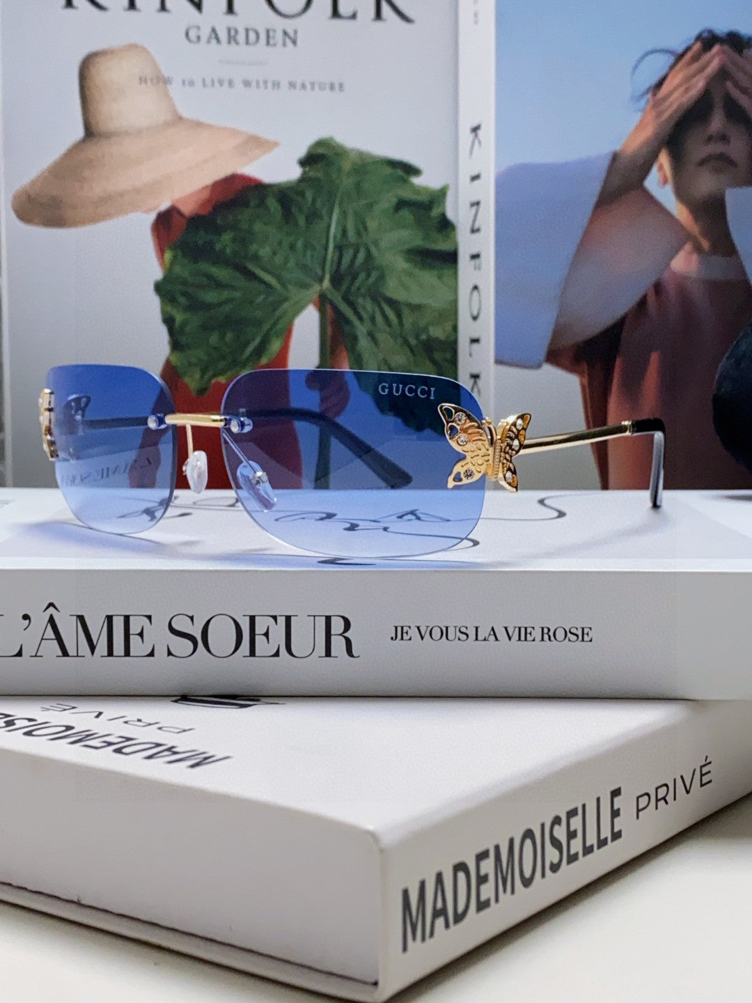 BUTTERFLY EMBELLISHED RIMLESS RECTANGULAR FRAME SUNGLASSES 570245 IN METAL