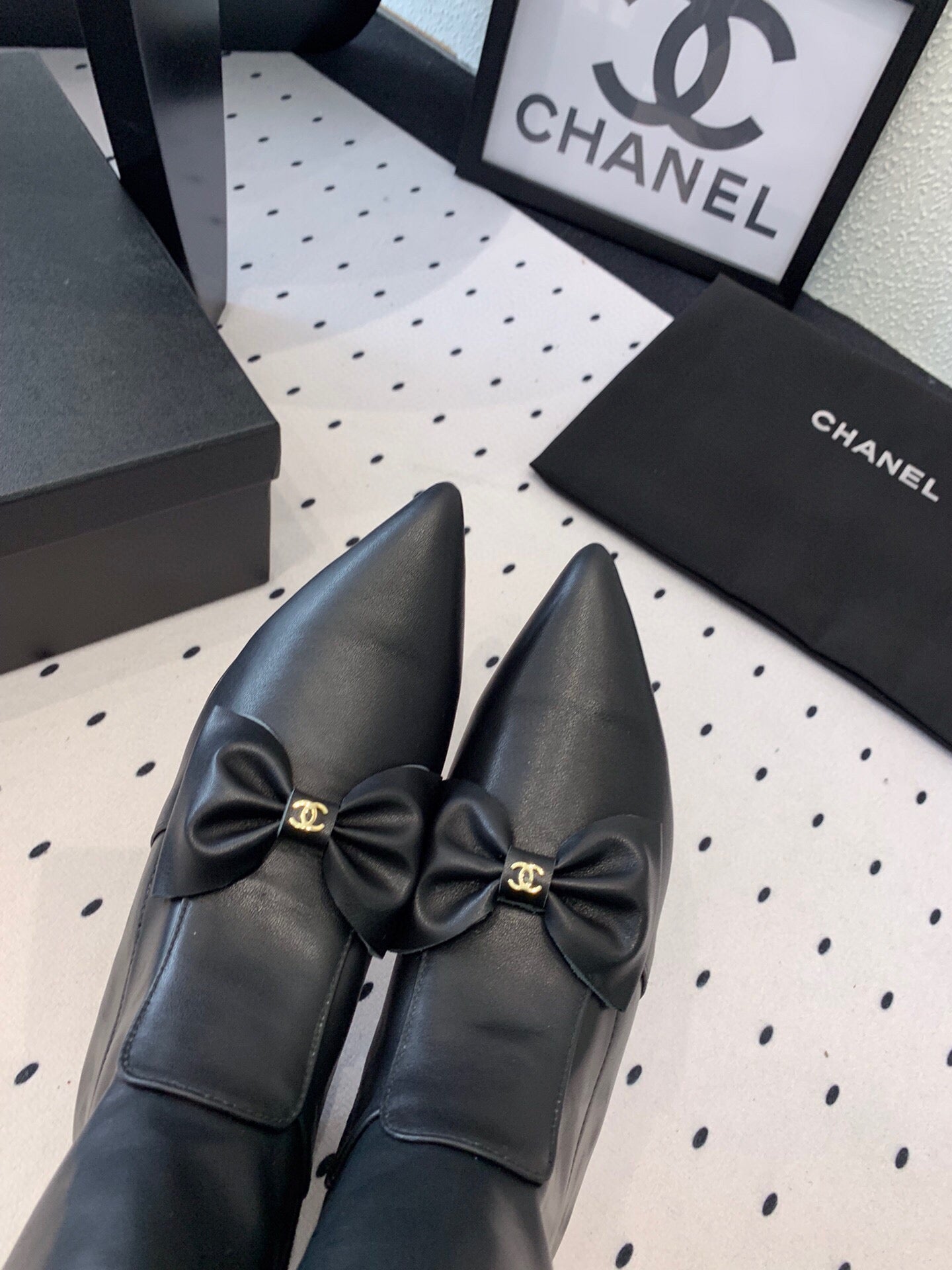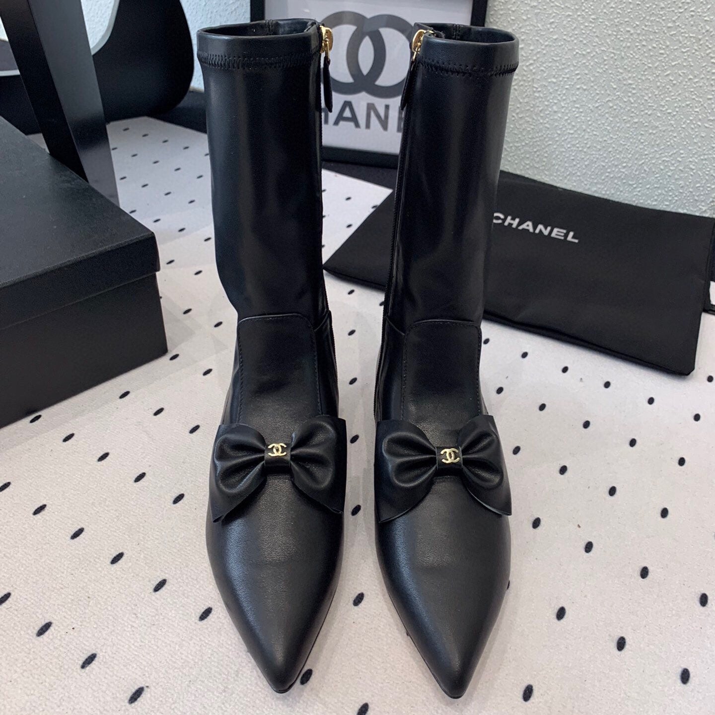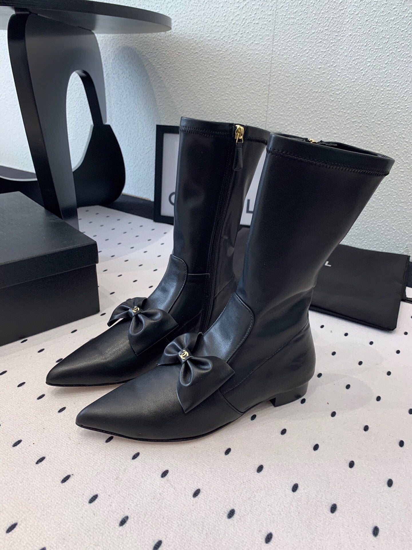 CC 25 Bow-knot Short Boot Black Sheepskin 514063