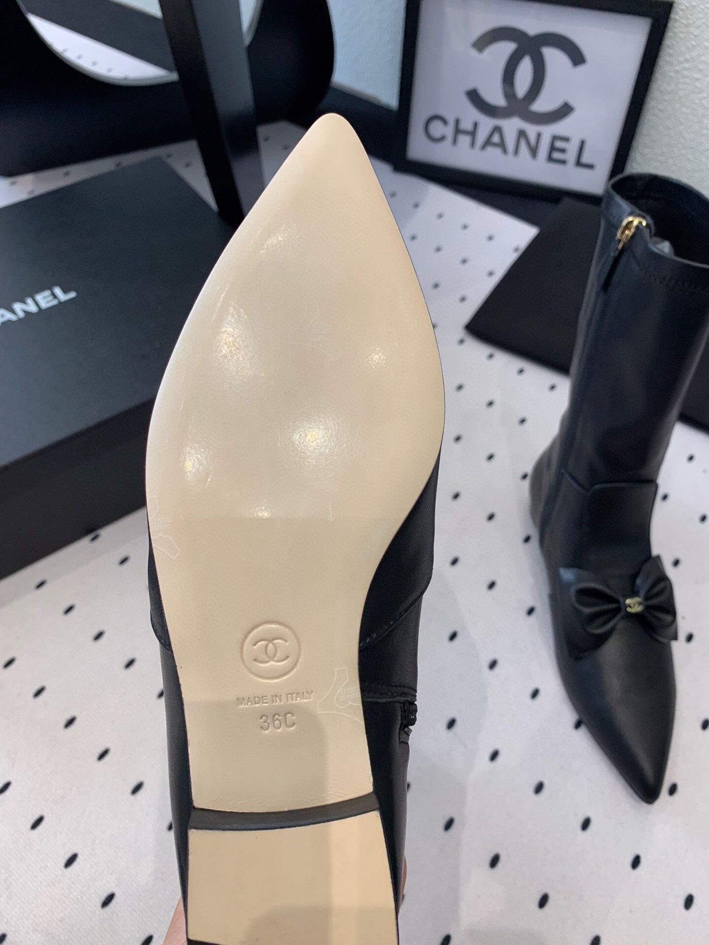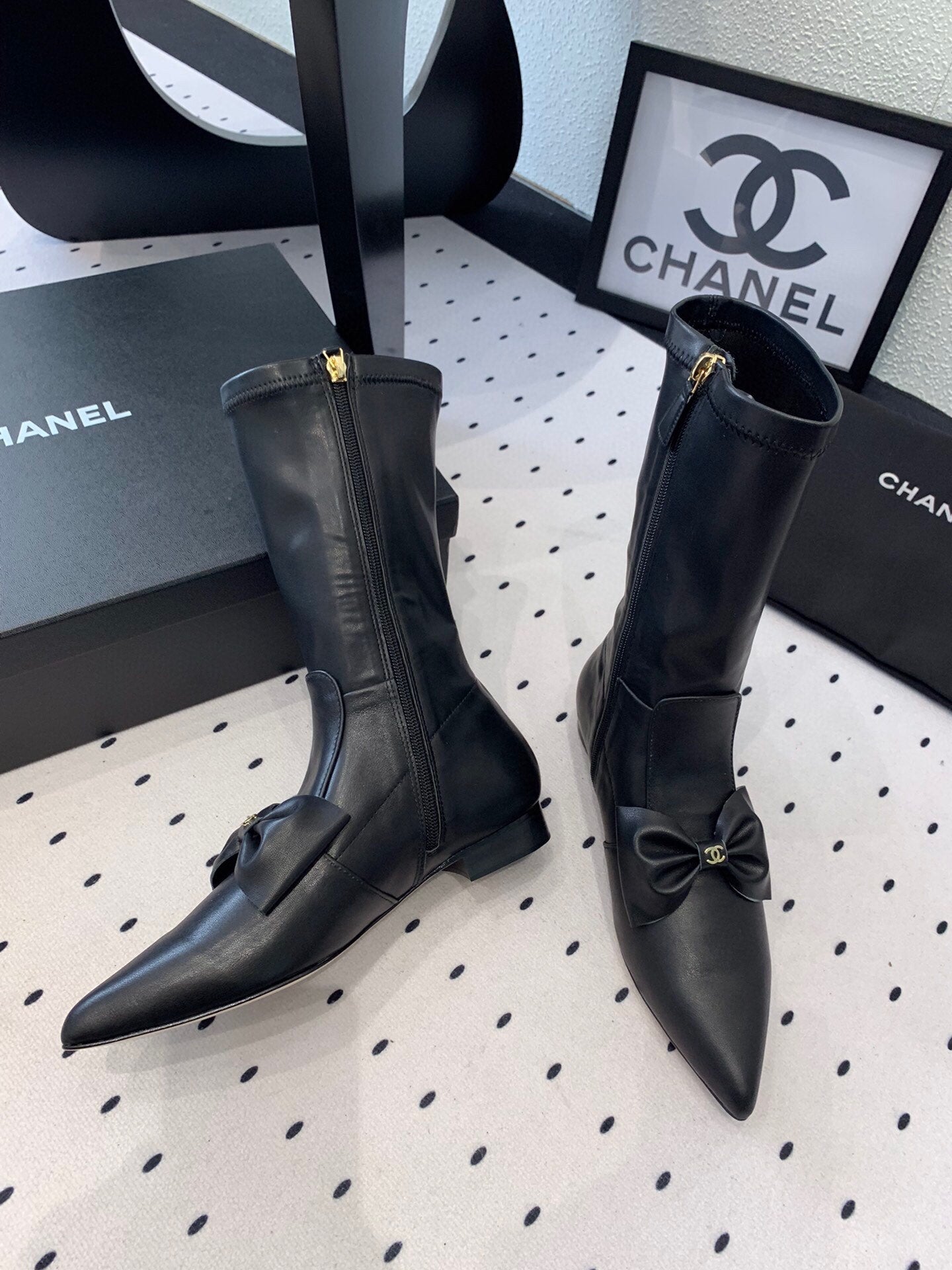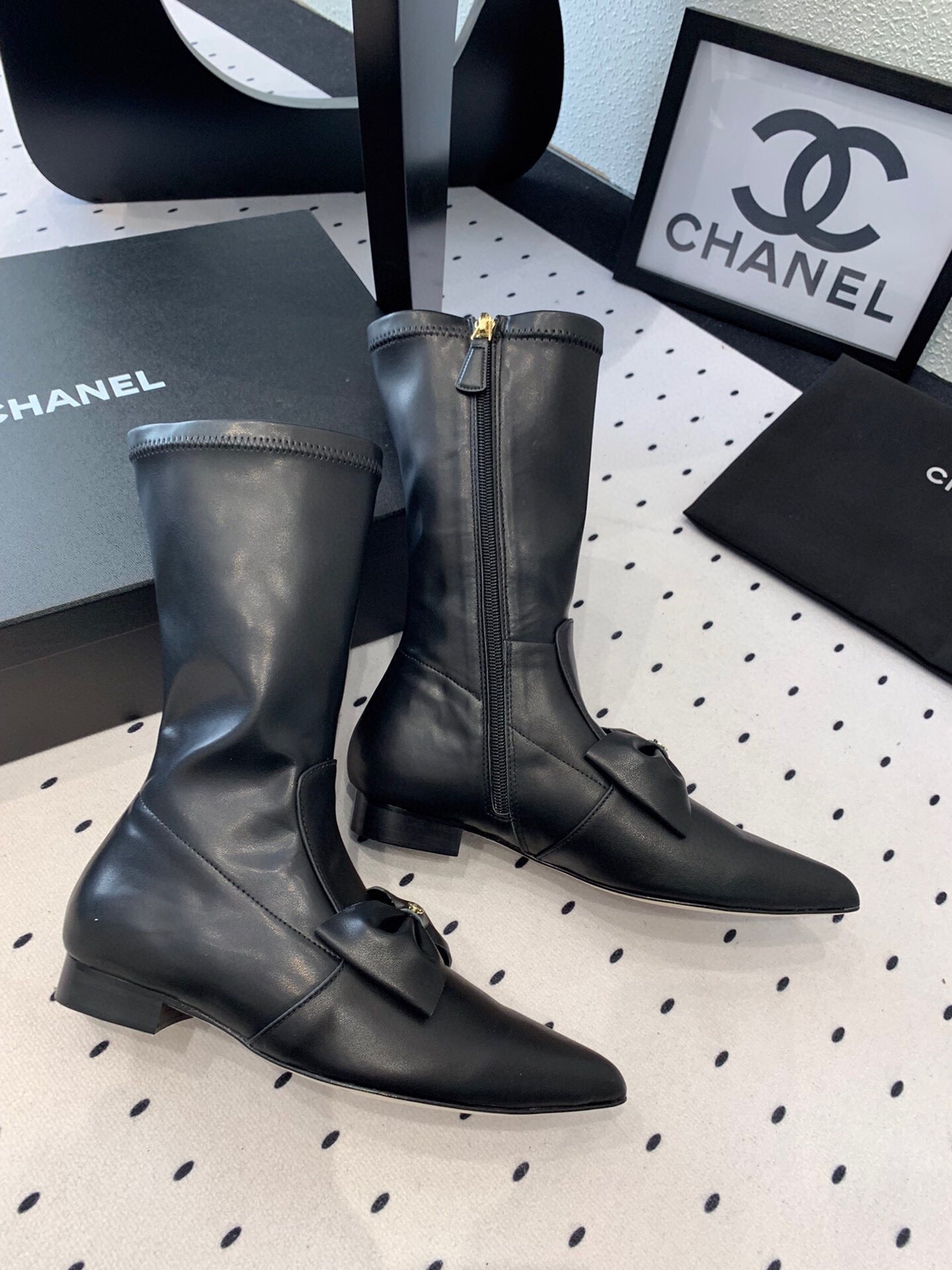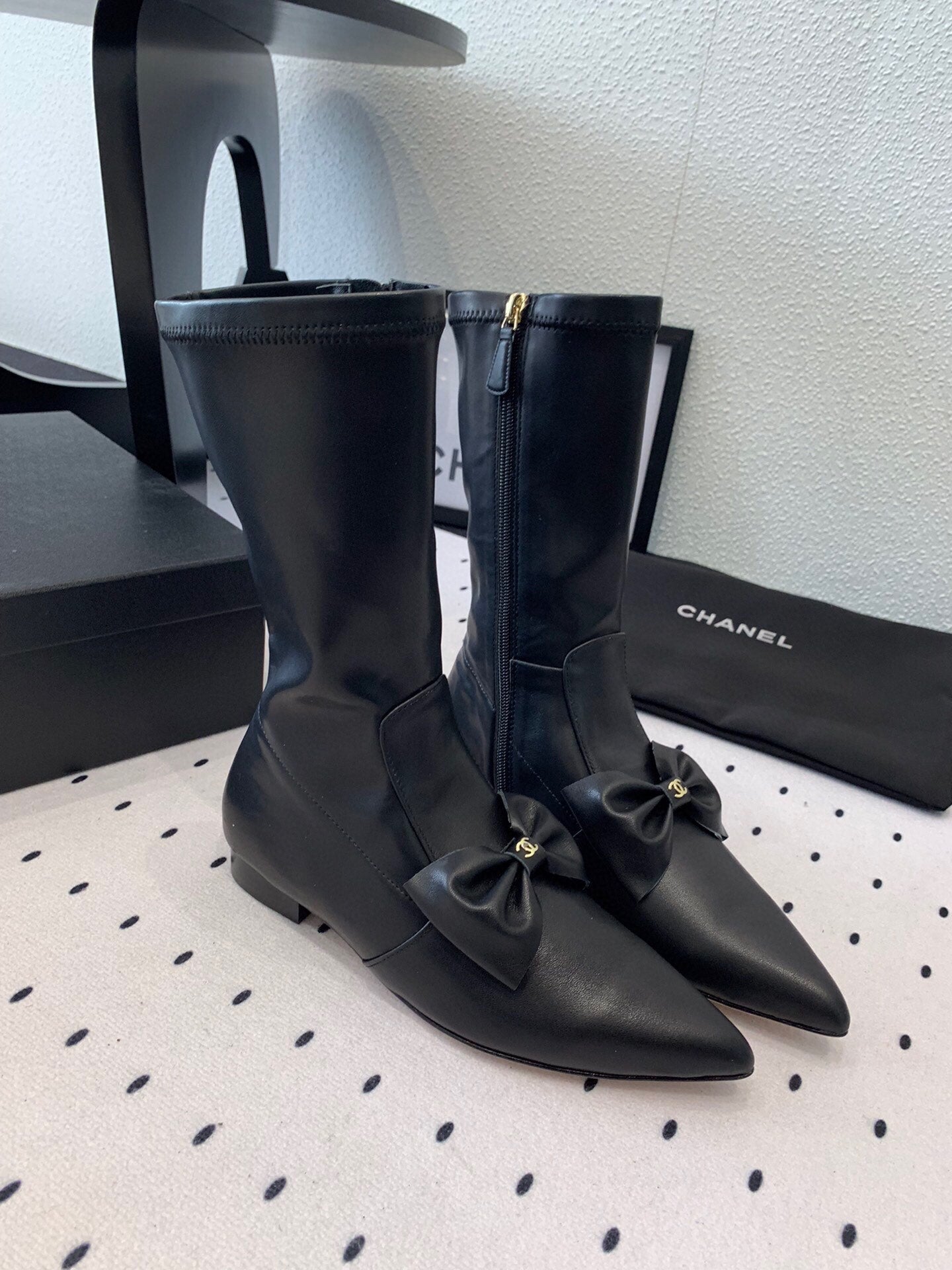 CC 25 Bow-knot Short Boot Black Sheepskin 514063
